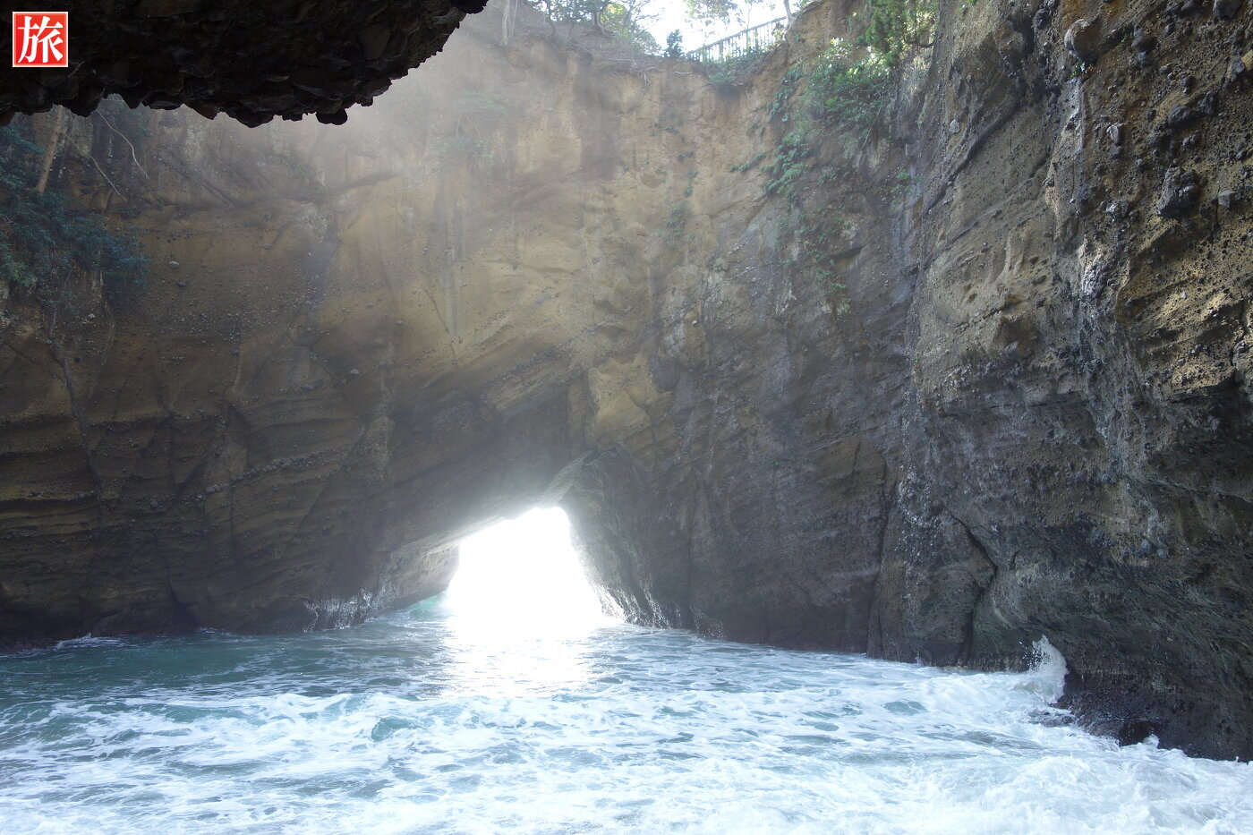田牛サンドスキー場を散策した後に、下から天のハートを拝む為、もう一度竜宮窟へ戻ってきました・・・が残念、やはり波があり途中までしか進めず次回の楽しみに持ち越しです!