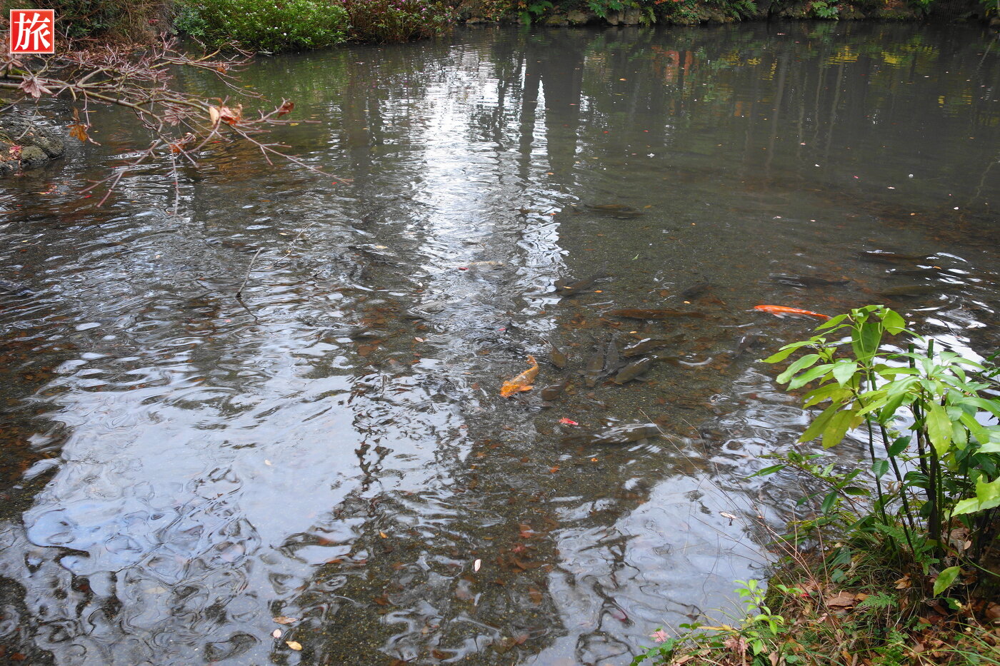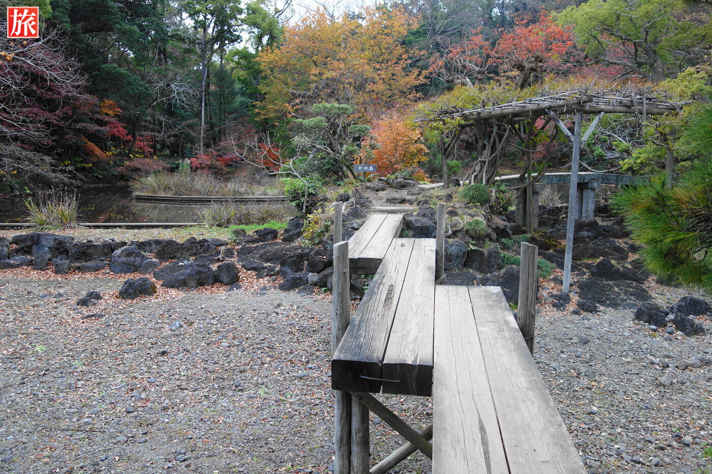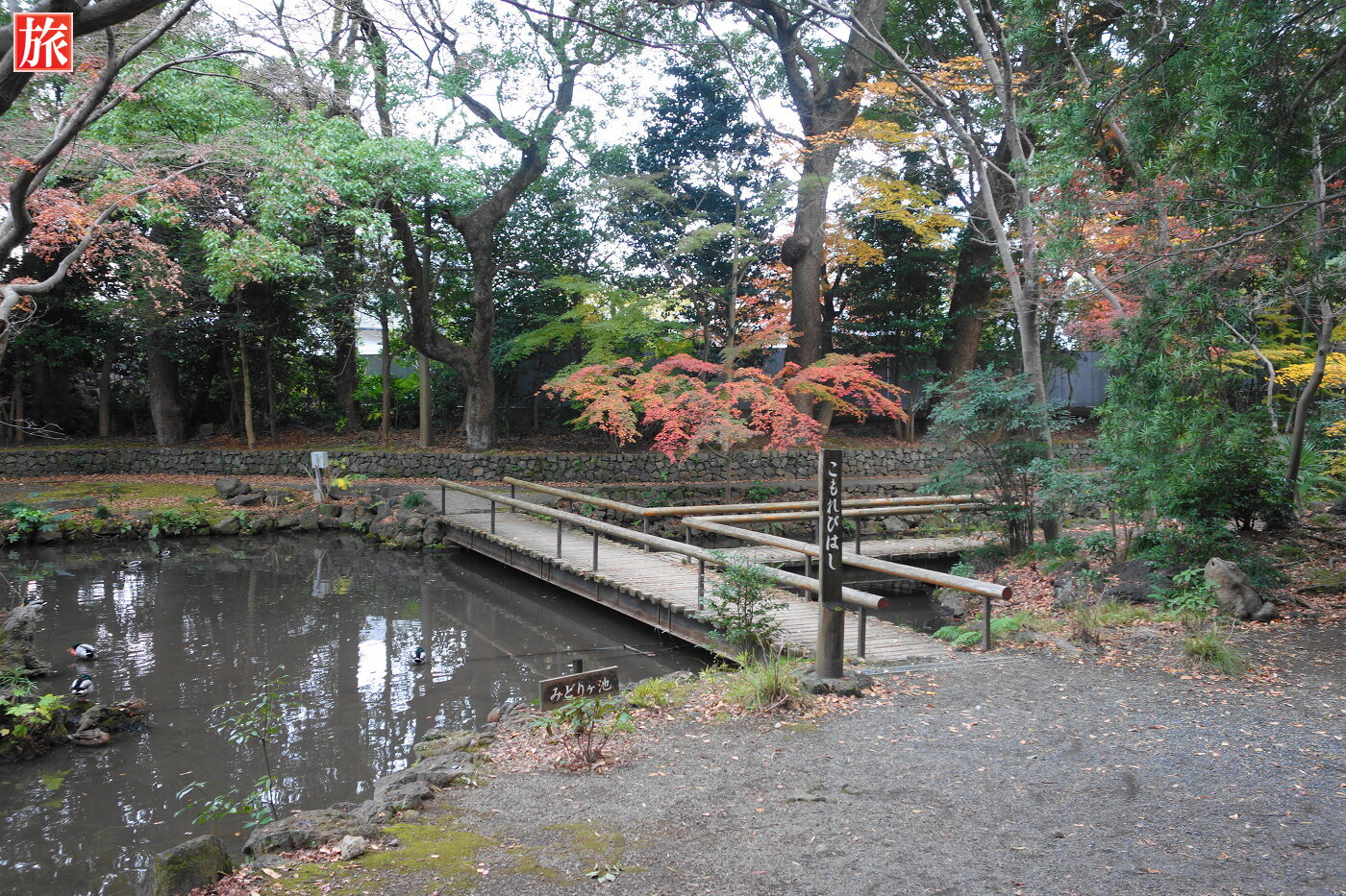 あやめ池。みどりヶ池に架かる「こもれびはし」。楽寿灯篭。