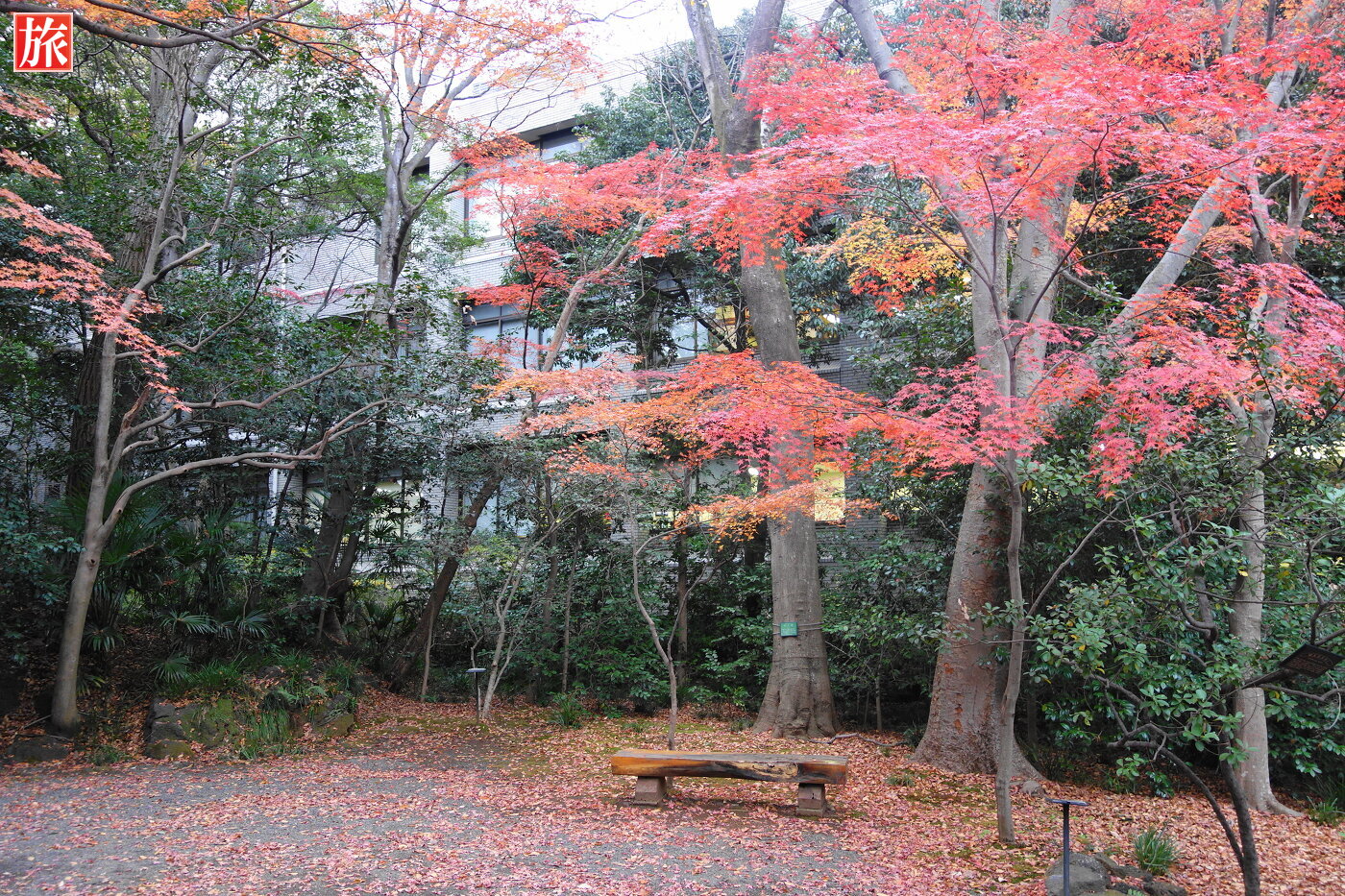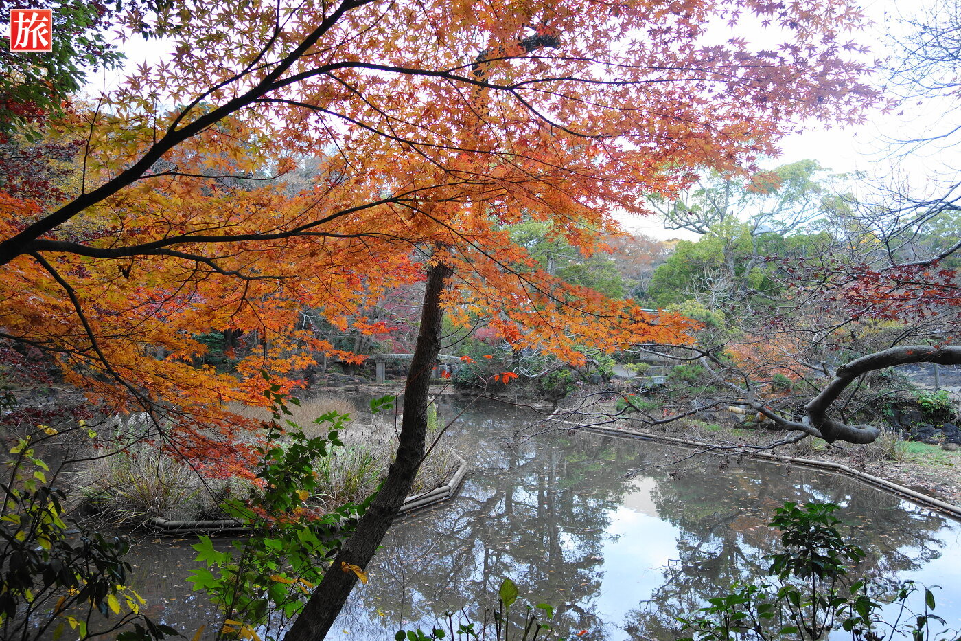 うっそうとした森に囲まれた公園で、国の「天然記念物及び名勝」に指定された庭園には文化財である楽寿館(旧小松宮別邸)がある。
