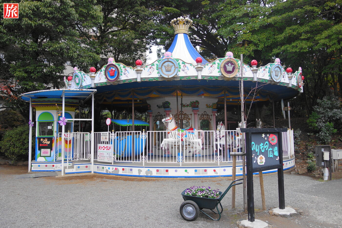 どうぶつ広場にいたポニー。アルパカの丘。のりもの広場にあったメリーゴーランドや豆汽車。