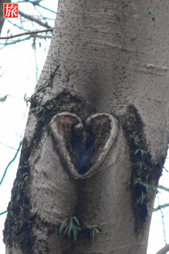 正門前に元祖ハートの木、園内は5本のハートの木があります。