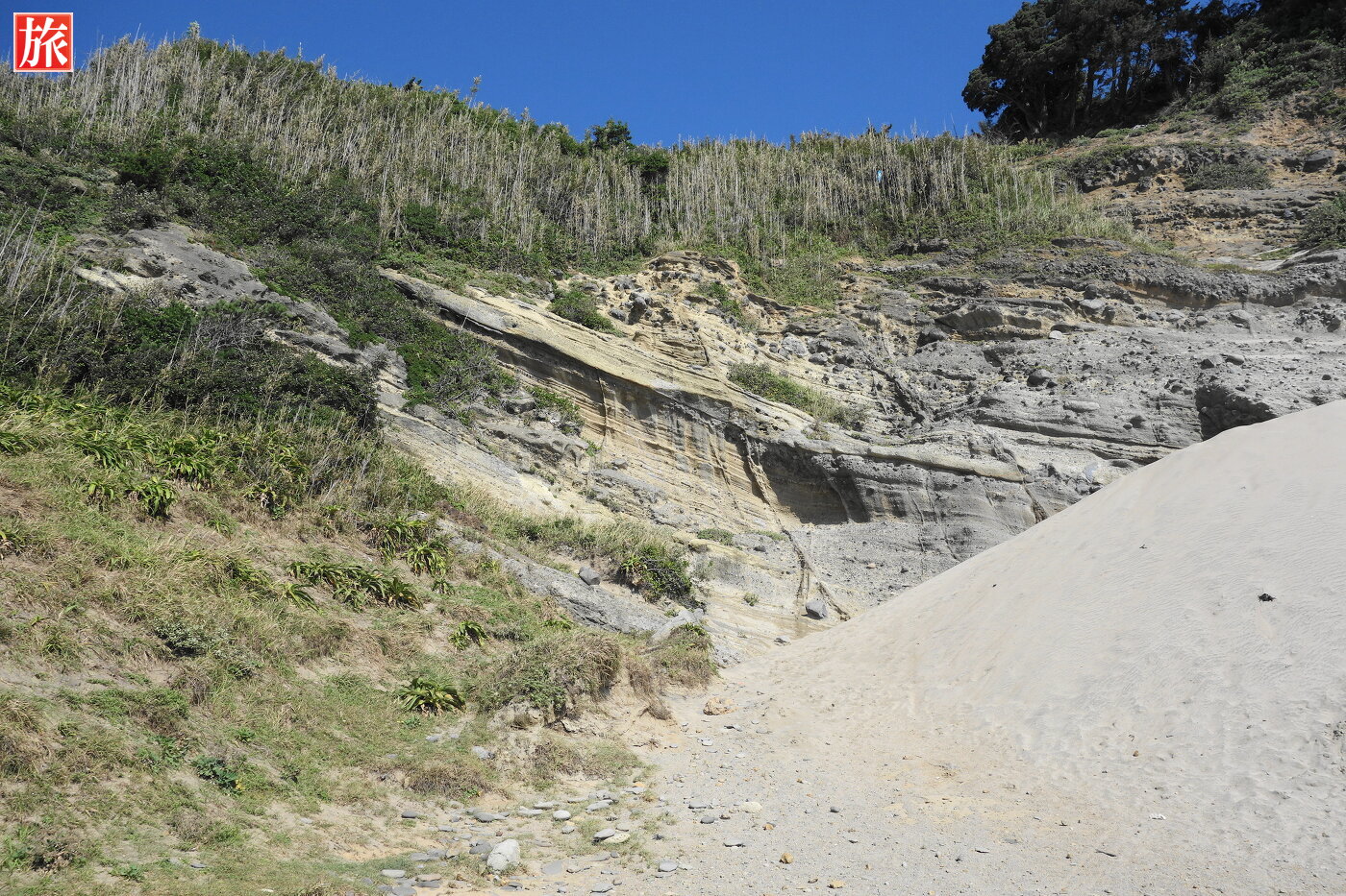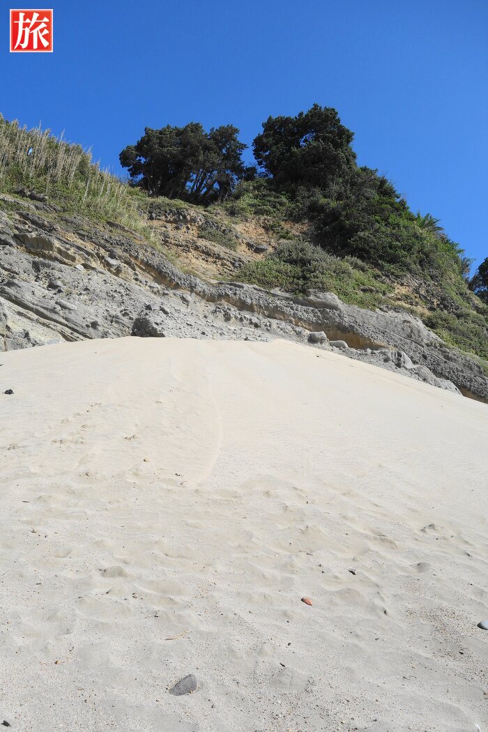 崖に砂吹き上がり崩れて、この景観を作り上げます。天然記念物の田牛ハマユウ群落。晴天でとても気持ちいい一時を過ごせました。