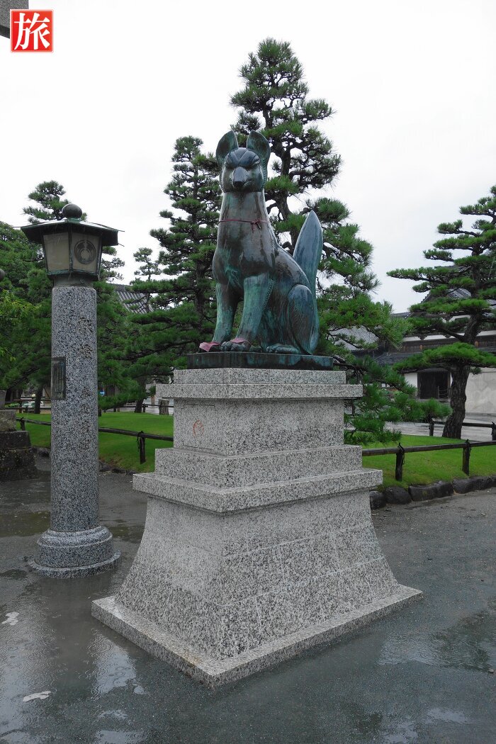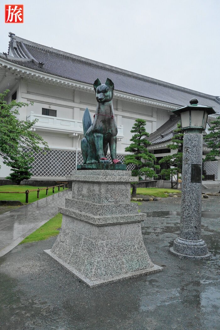 大本殿左右に鎮座する狐。豊川いなり大本殿の説明。