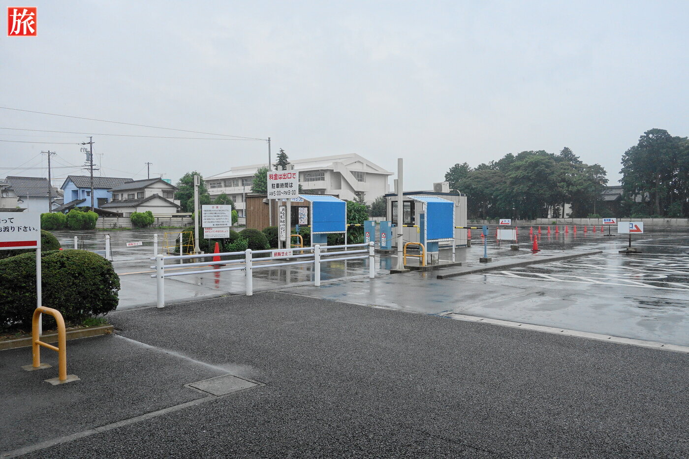 豊川稲荷南西、幸町交差点付近の大型駐車場を利用しました。梅雨空・・・・。総門、門扉及び両袖の扉は、高さ4.5m、幅1.8m、厚さ15cmの欅(けやき)一枚板。