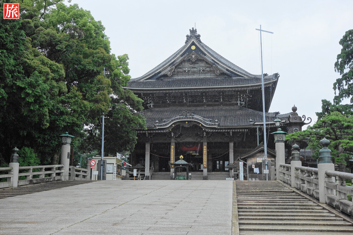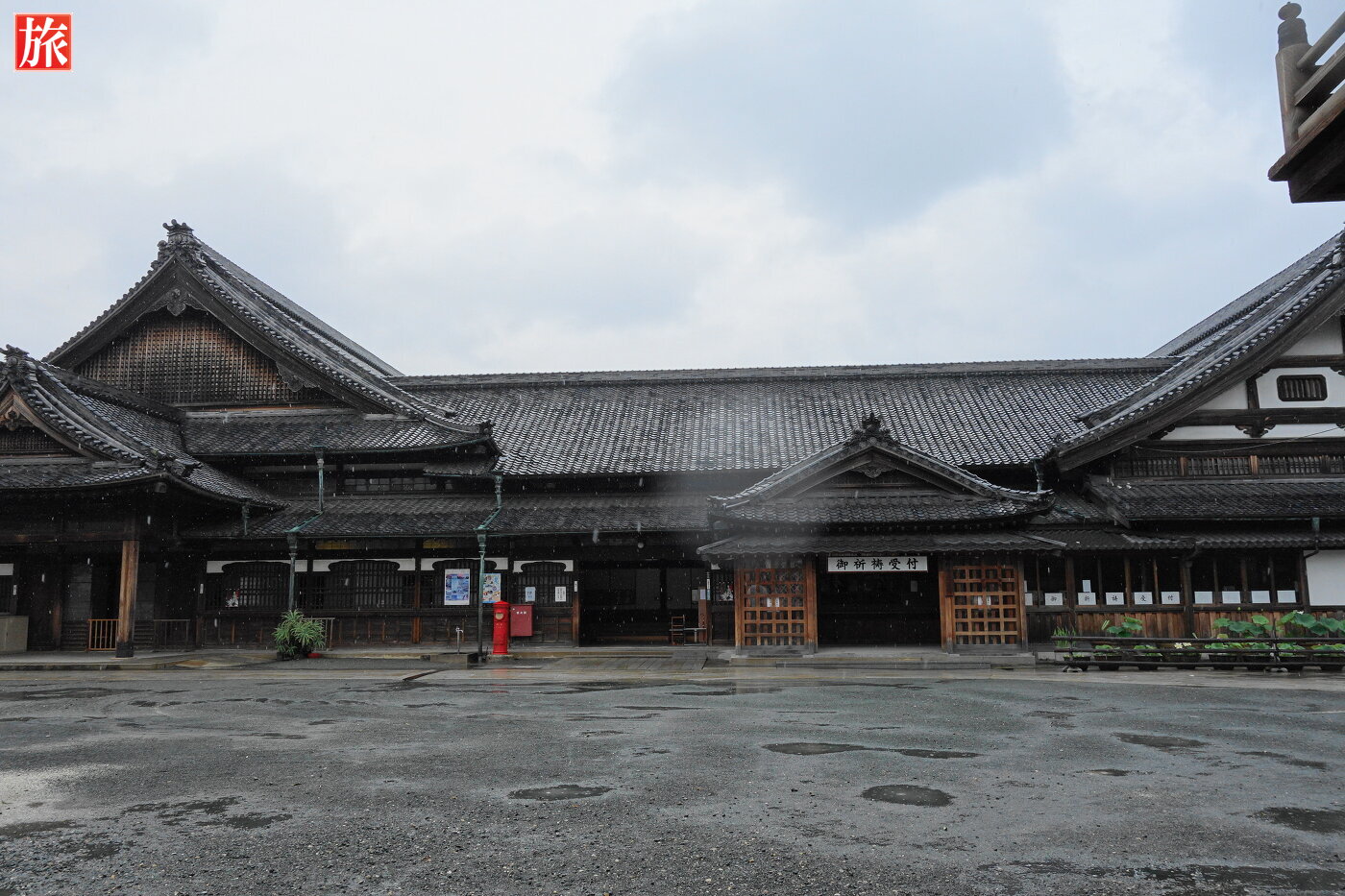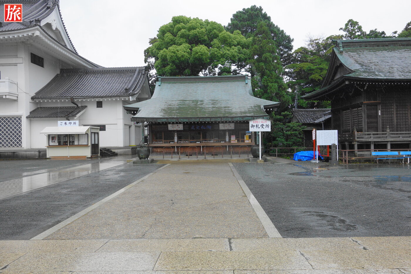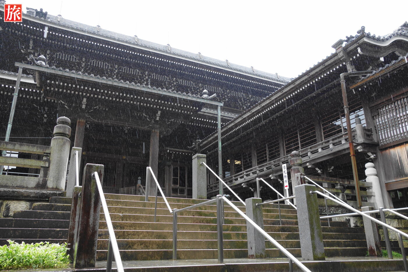 本殿と宝雲殿を繋ぐ渡り廊下。宝雲殿から法堂に繋がる廊下。ここを潜って霊狐塚・奥の院へ向かいます。階段を降りた付近から本堂を振り返ってみた様子。雨足が強い〜・・・