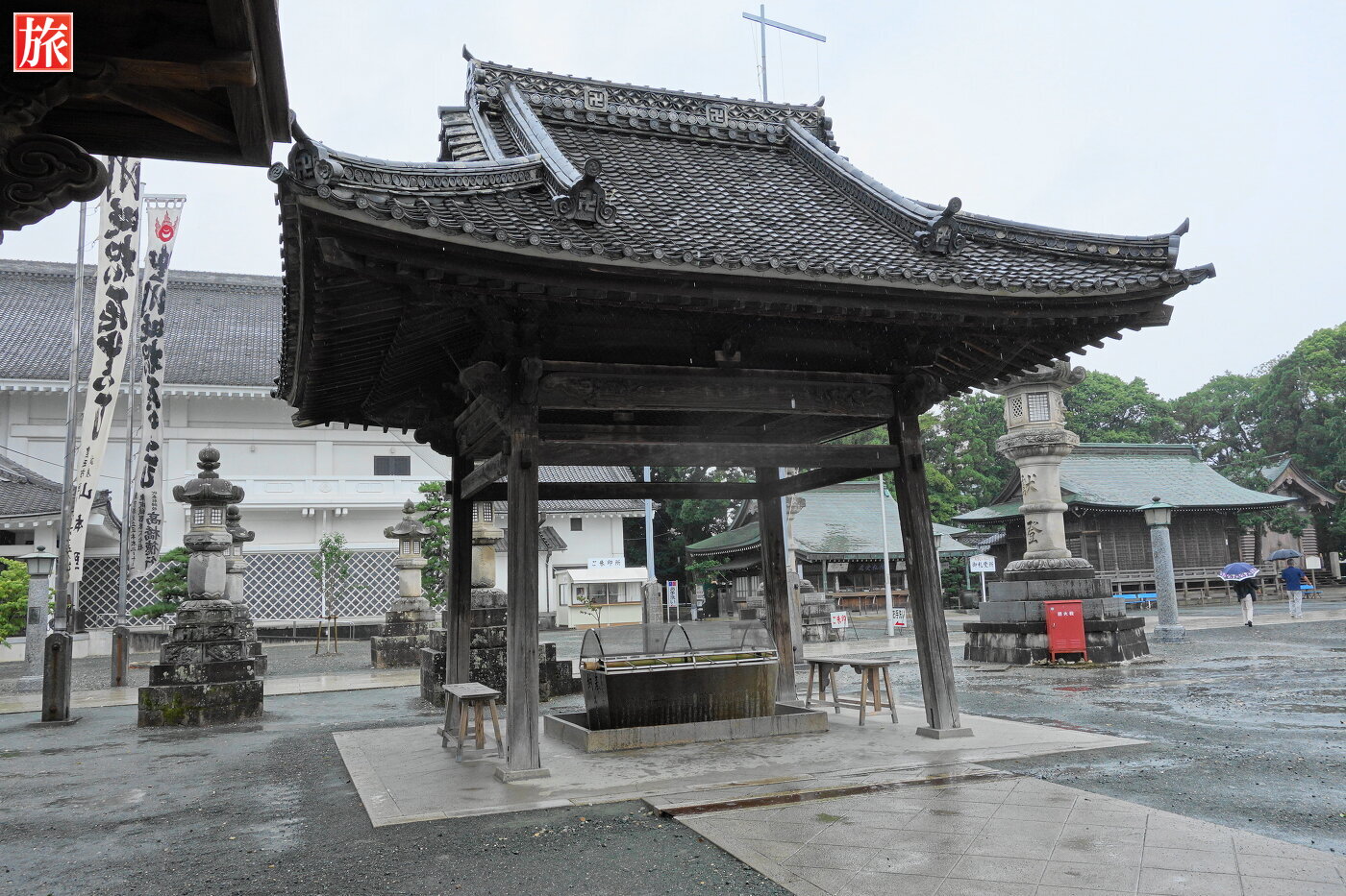 手水舎。立願所。ちょうど郵便の集配車が赤い丸ポストの前に停車していました。なんでも境内に設置されていた丸ポストは現役最古の丸ポスト(明治45年製)とのことです。