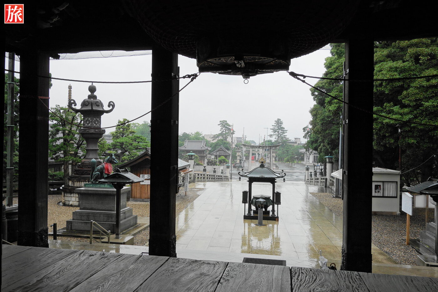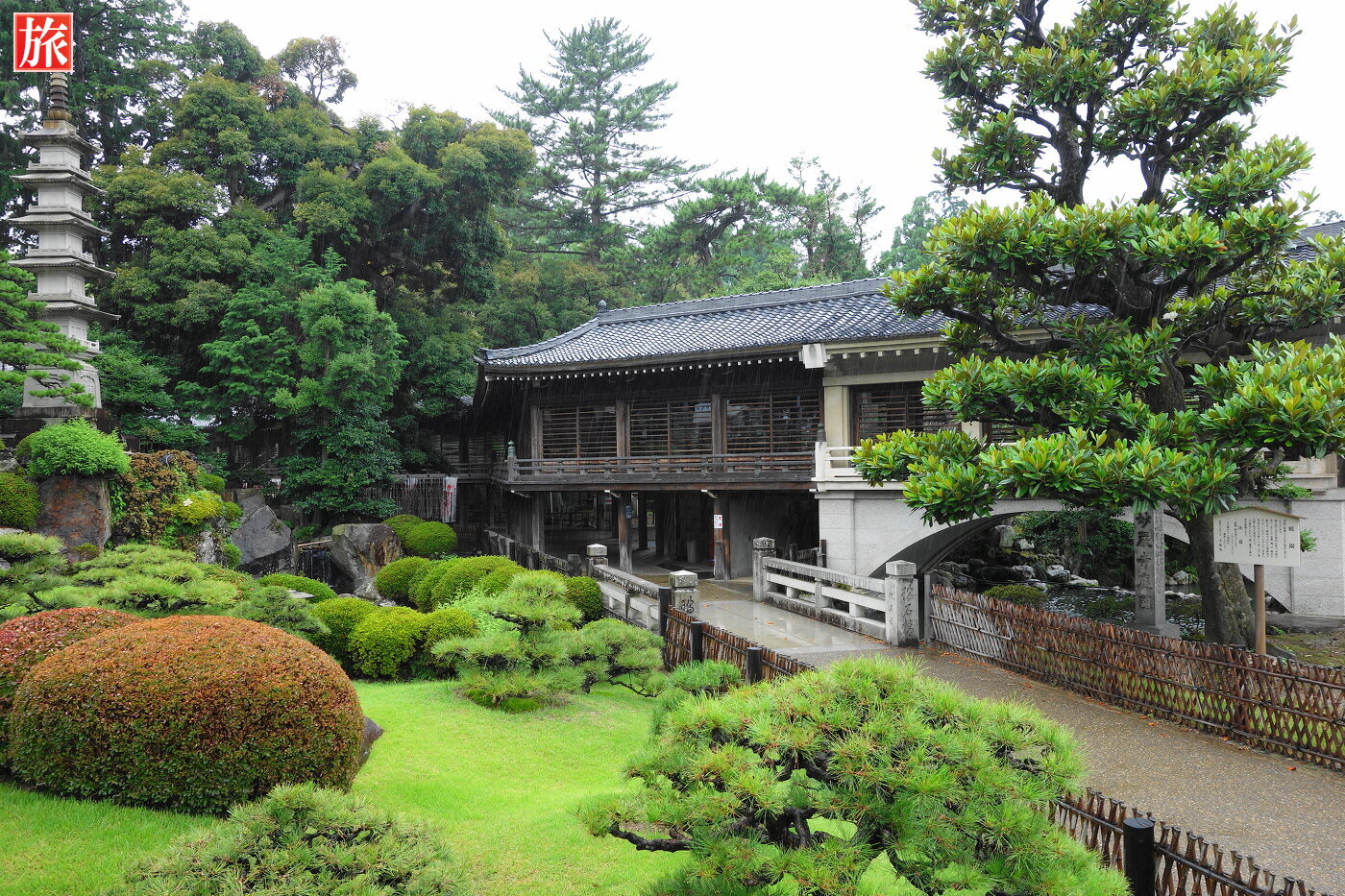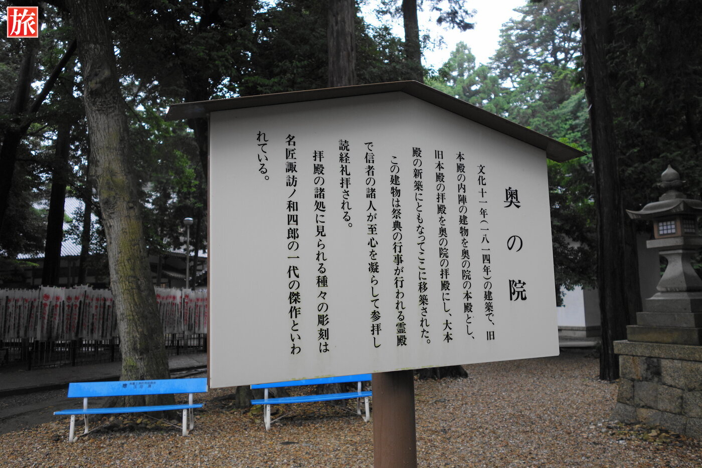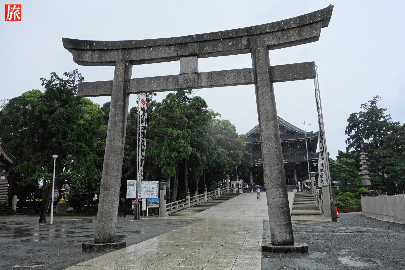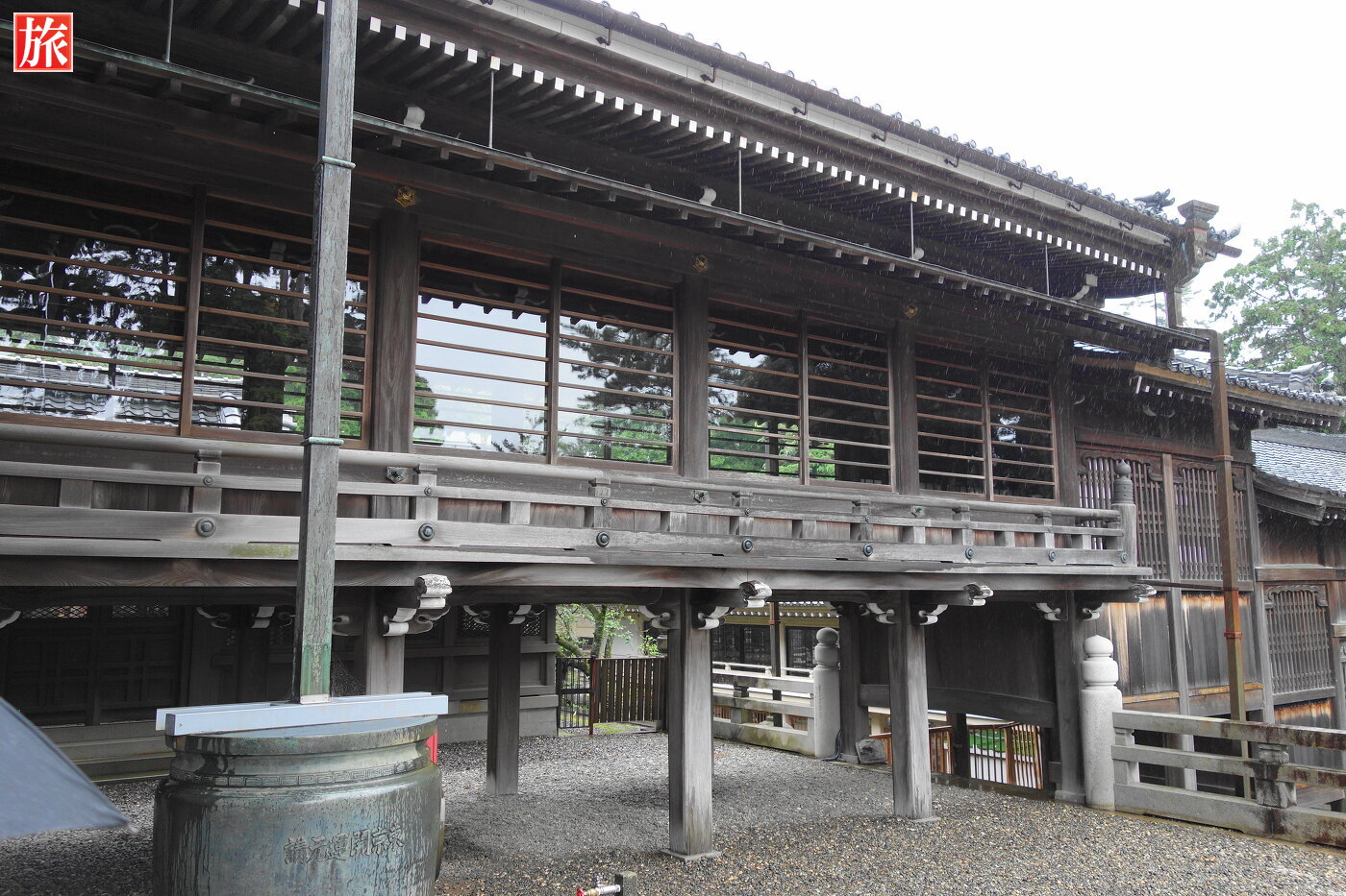 庭園から見た大本殿。大本殿。織田信長や豊臣秀吉らの信仰を集めていたと言われています。