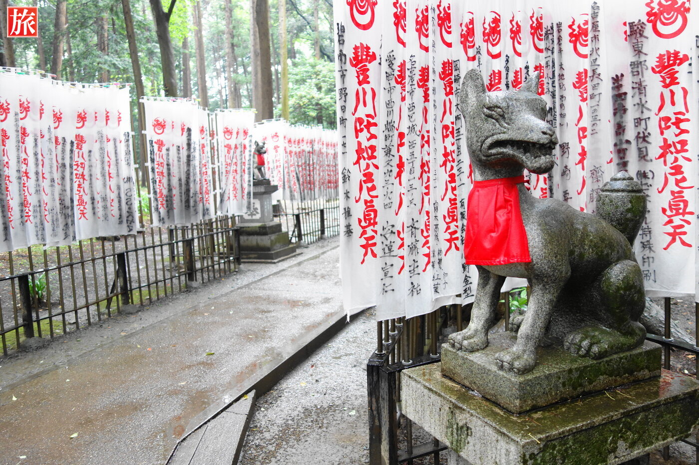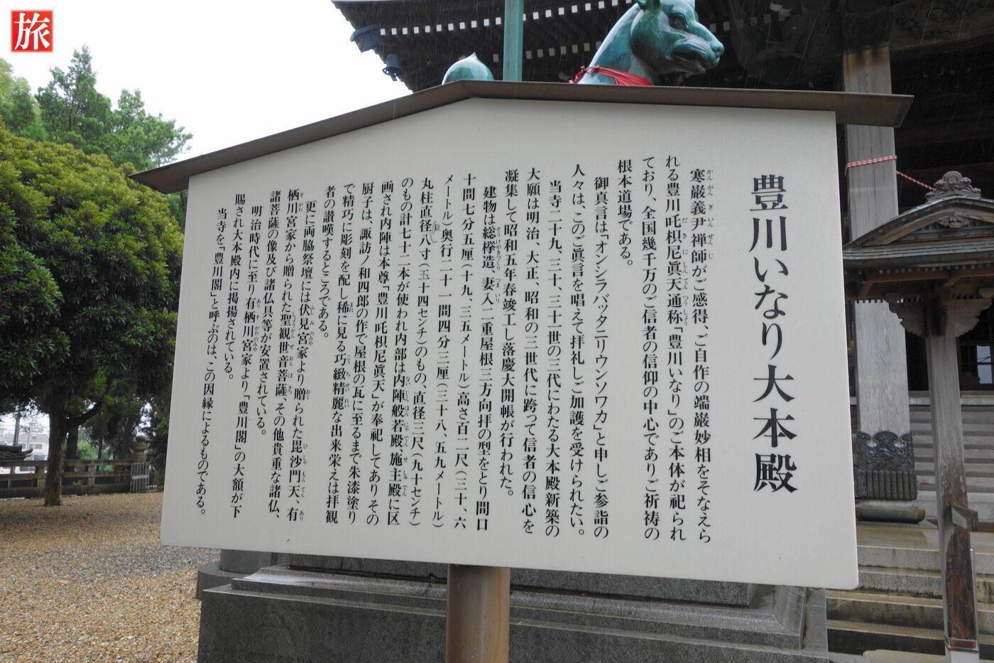 当日は生憎の空模様で、時より雨が強く降り、観光やお参りくる人は少なくゆっくり参拝できました。豊川稲荷は神社ではないものの、商売繁盛や福徳開運の神として知られ、境内の参道には鳥居が立っています。境内にまつられている鎮守の稲荷が有名なため、豊川稲荷と呼ばれることの多い寺院です。