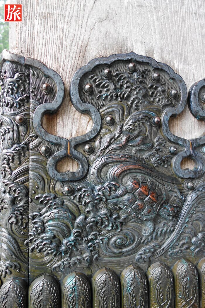 大本殿近くにあった大きな灯篭。開運しめなわ念珠。大本殿から鳥居方向を望む。大本殿柱に細工された亀の彫刻。
