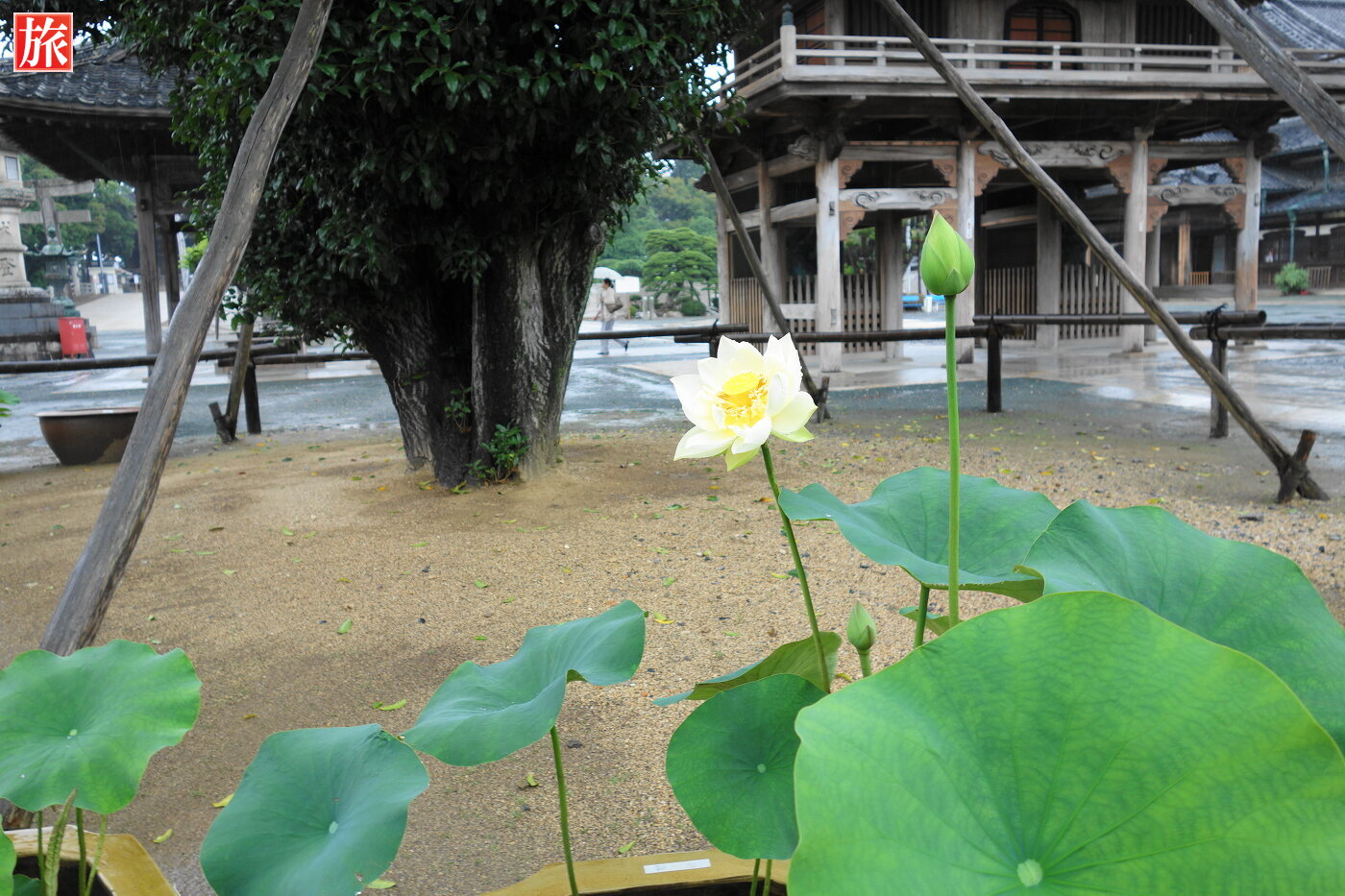 鎮守堂、別名、龍天堂(りゅうてんどう)とも言われ、昔の神楽殿であったものを昭和五年春本殿の落慶開帳に際し修築したものです。寺寶館の前の蓮の花。金木犀の大木。