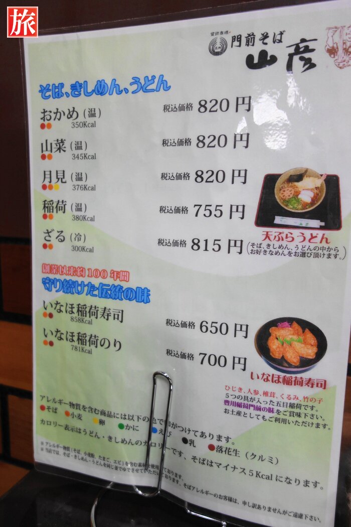 豊川いなり表参道。せっかくなので、いなり寿しとそばを食べてきました。門前そば・きしめん「山彦」。