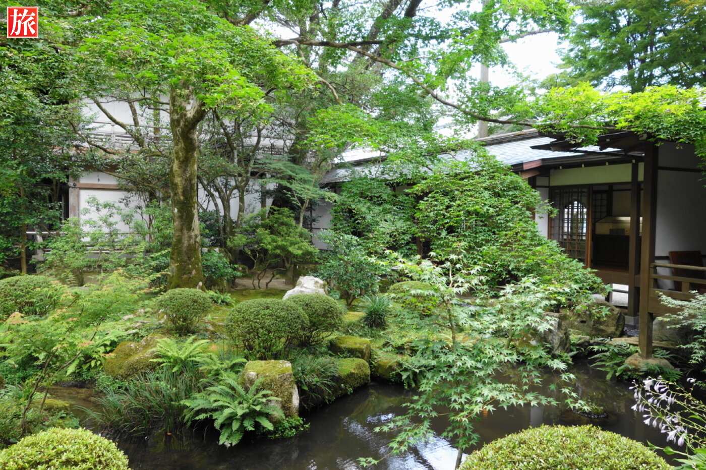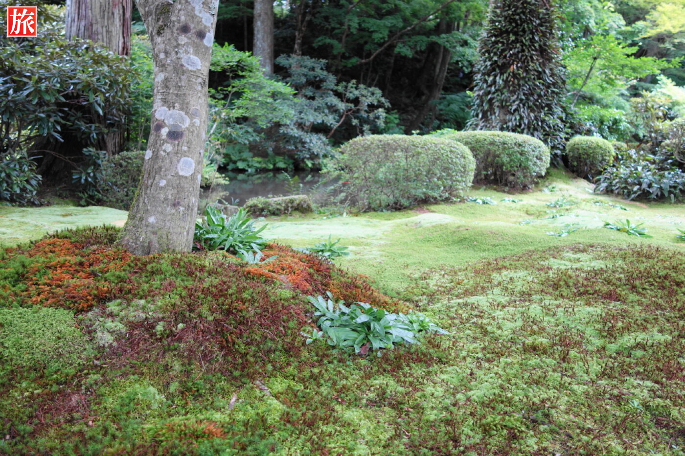自然の傾斜を巧みに使った聚碧園と有清園の池泉回遊式庭園がある。庭一面の苔も見事。一年中四季折々の花が楽しめる。