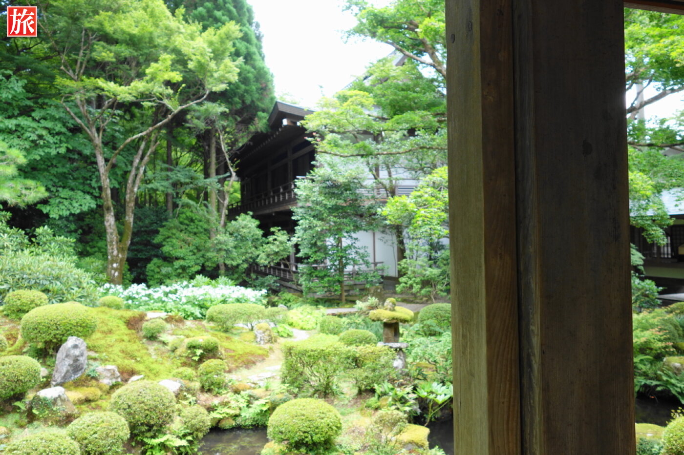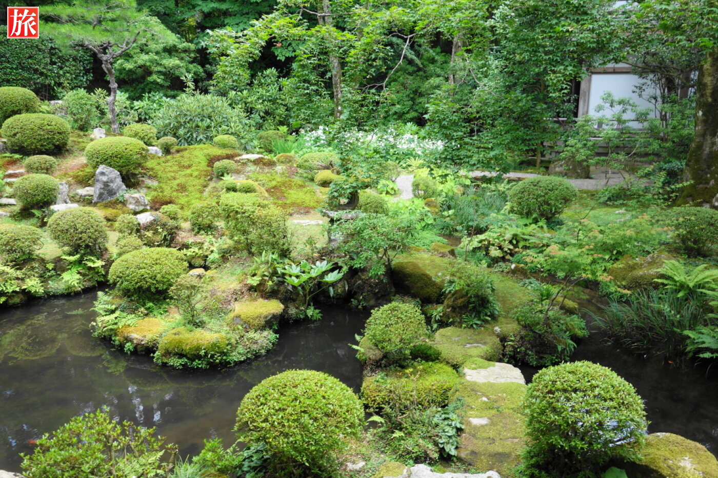 大原三千院 聚碧園は江戸時代の茶人・金森宗和の作で客殿の前に広がり、皐月の刈込が美しい。