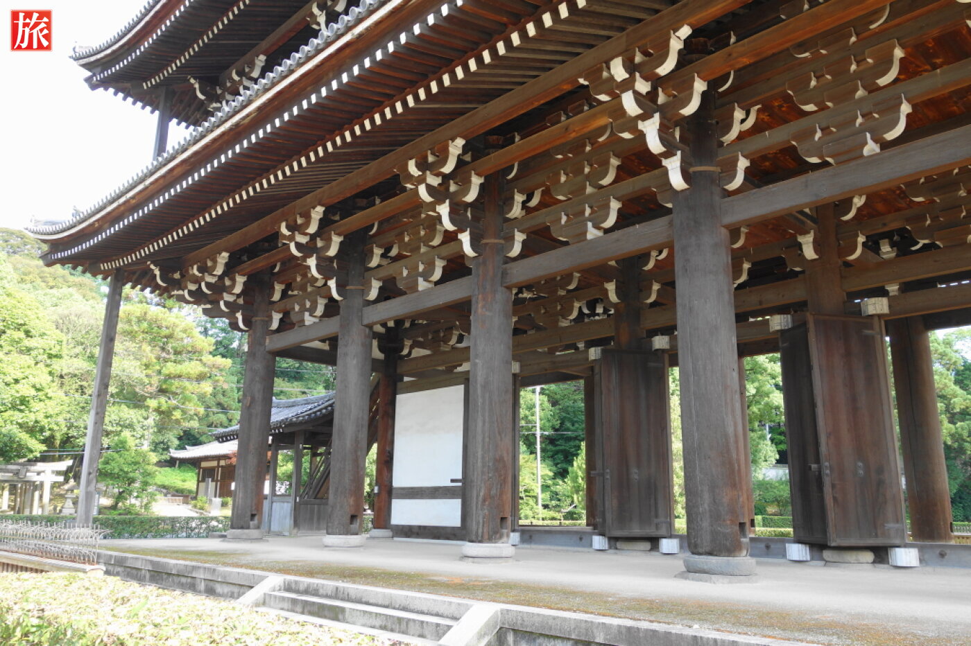見所は三門(国宝)、通天橋、方丈などです。秋の紅葉シーズは人ごみでごった返しますが、夏の平日は空いていました。明治の廃仏毀釈で規模が縮小されたとはいえ、今なお三門、本堂、方丈、庫裏などからなる主要伽藍を中心に25か寺の塔頭を有する大寺院です。