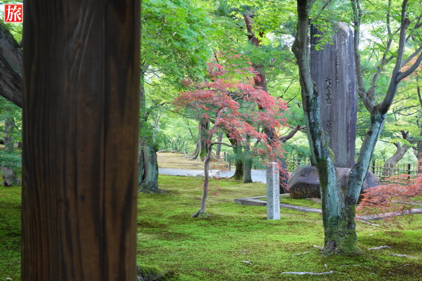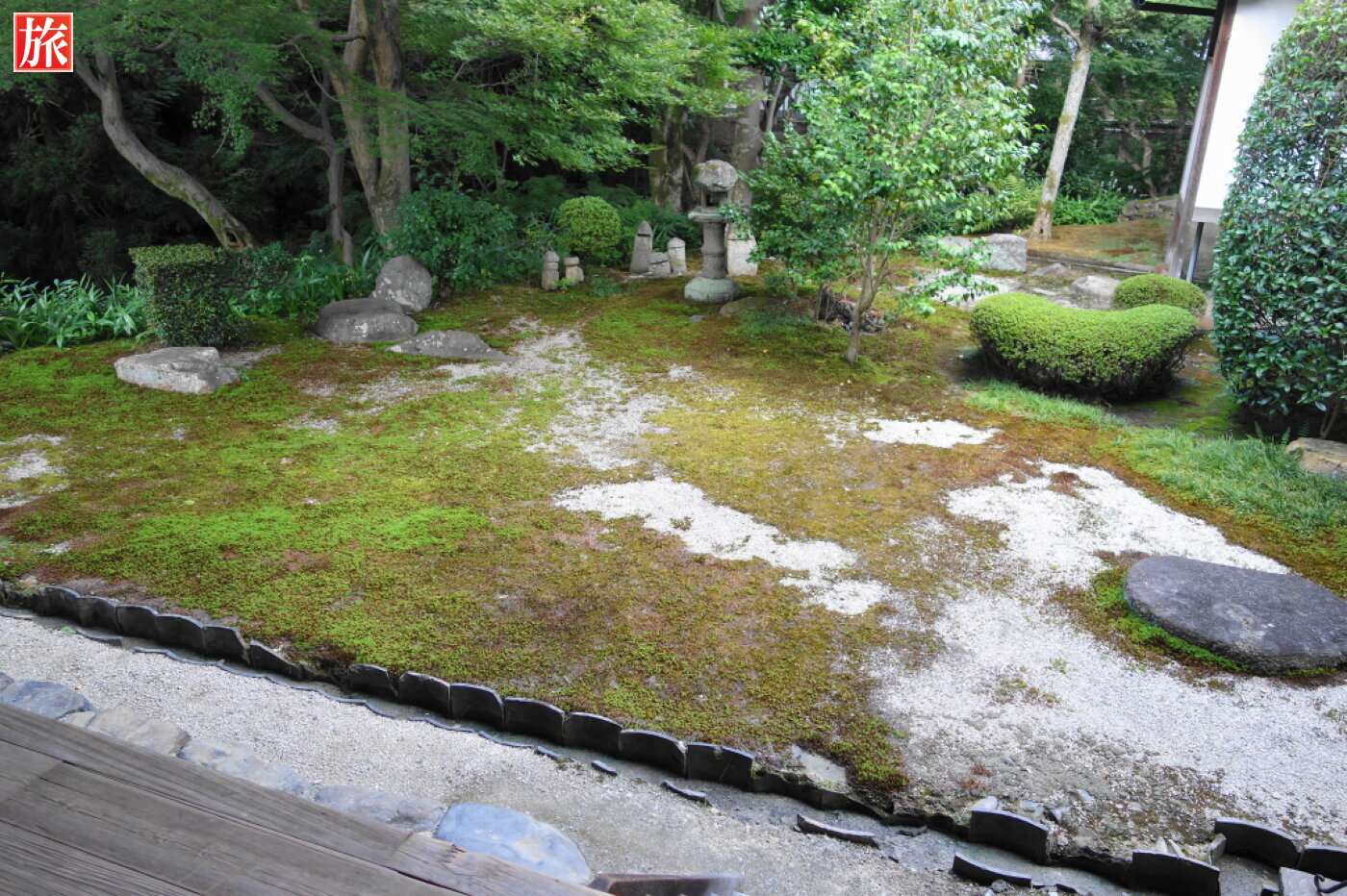 開山堂の庭です。開山堂(重要文化財)別名常楽庵。祀堂は床高で開山国師像を安置します。開山堂から来た道を振り返って見た庭園。 普門院方向から見た開山堂庭園(池泉鑑賞式庭園)。