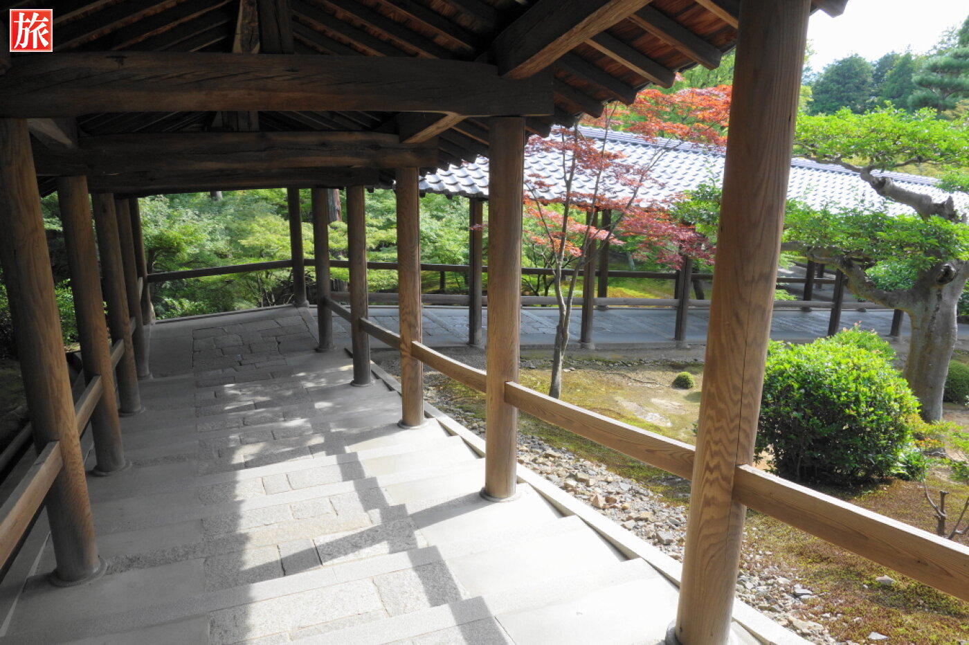 方丈の中に入ってすぐの板の廊下です。方丈庭園は方丈を中心に東西南北の四庭から構成され、釈迦成道の八相に因んで「八相庭」と称します。