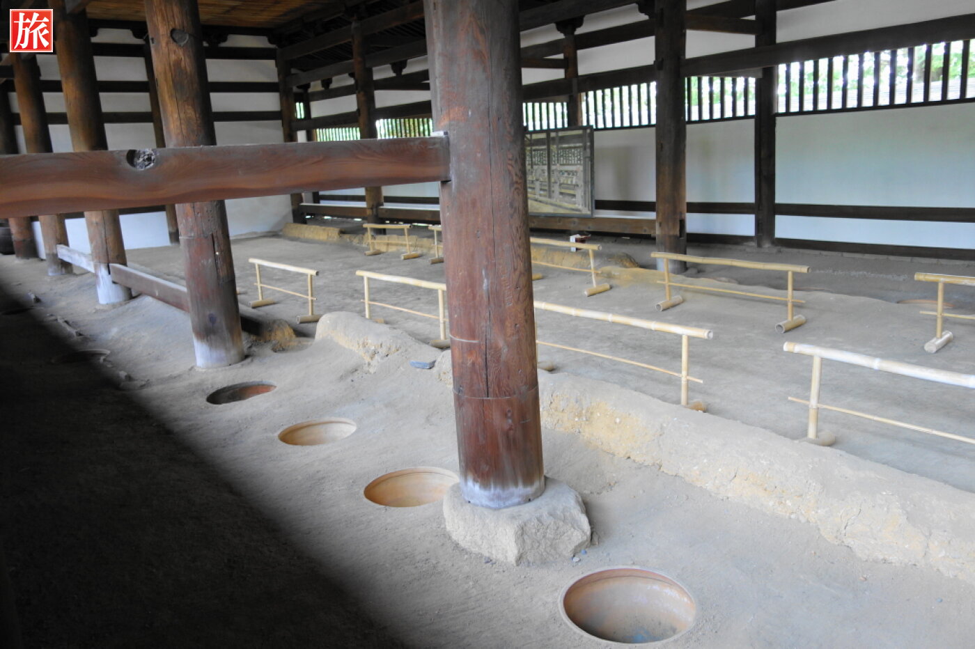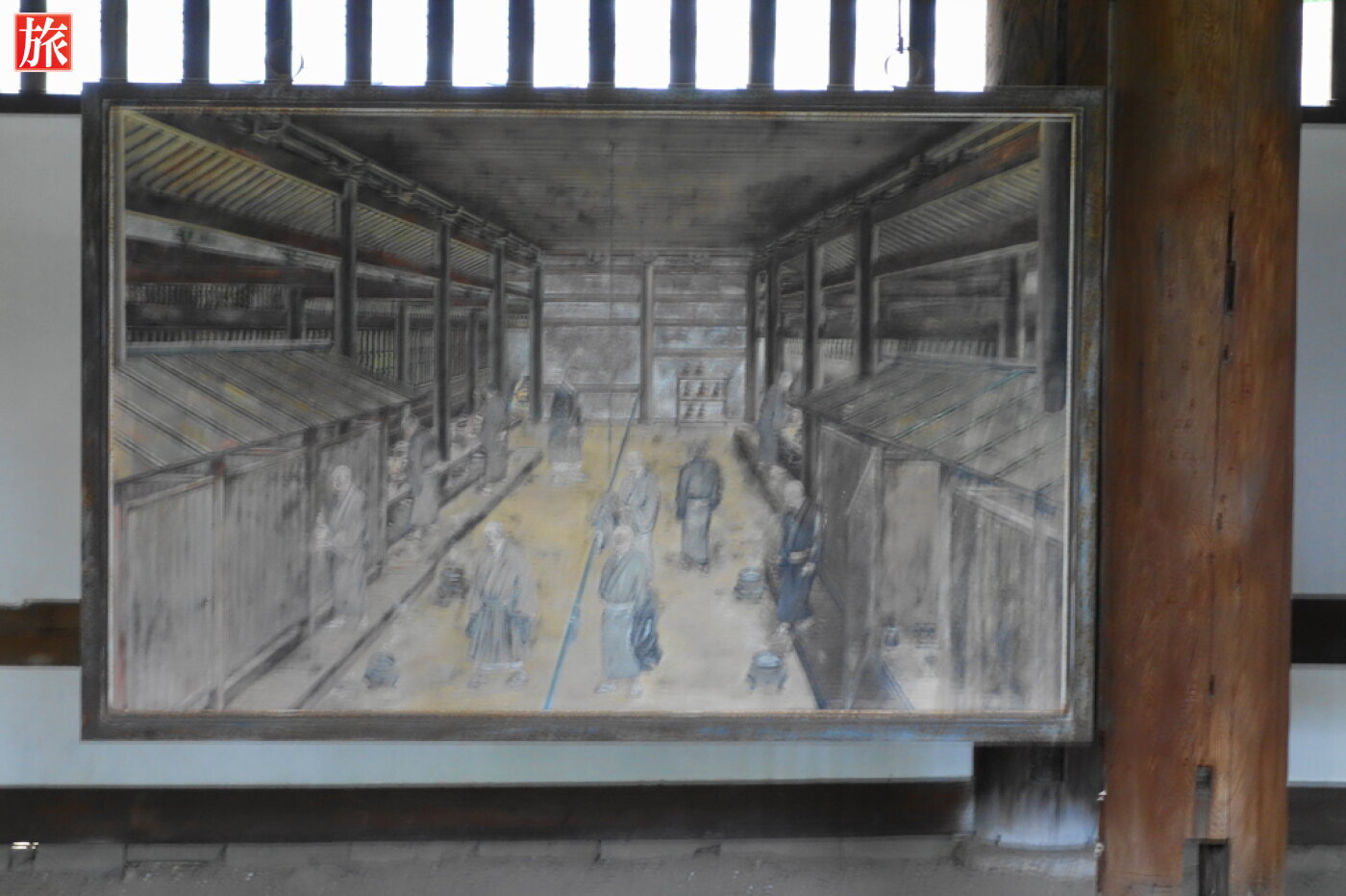 東司(とうす)室町時代唯一、日本最大最古の禅宗式の東司(便所)の遺構です。外観と内部の様子です。東司の内部に描かれた絵。東司の案内板。