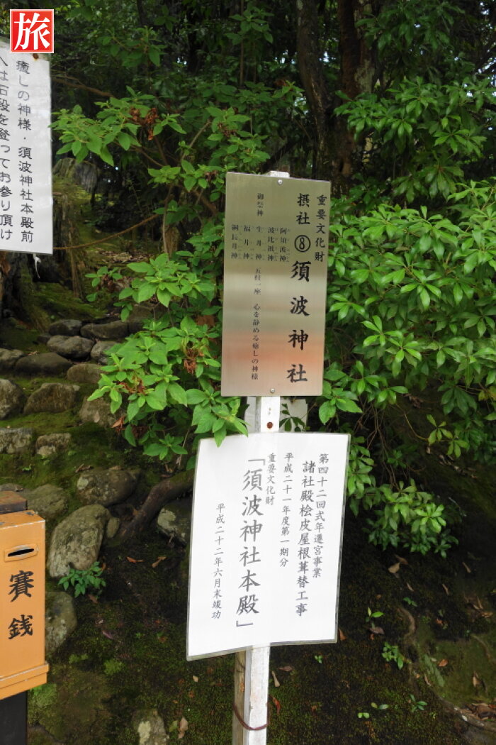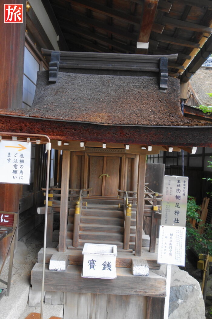 杉尾神社と国宝・権殿。国宝・本殿。中門の脇にある末社の棚尾神社、祭神:櫛石窓神・豊石窓神。