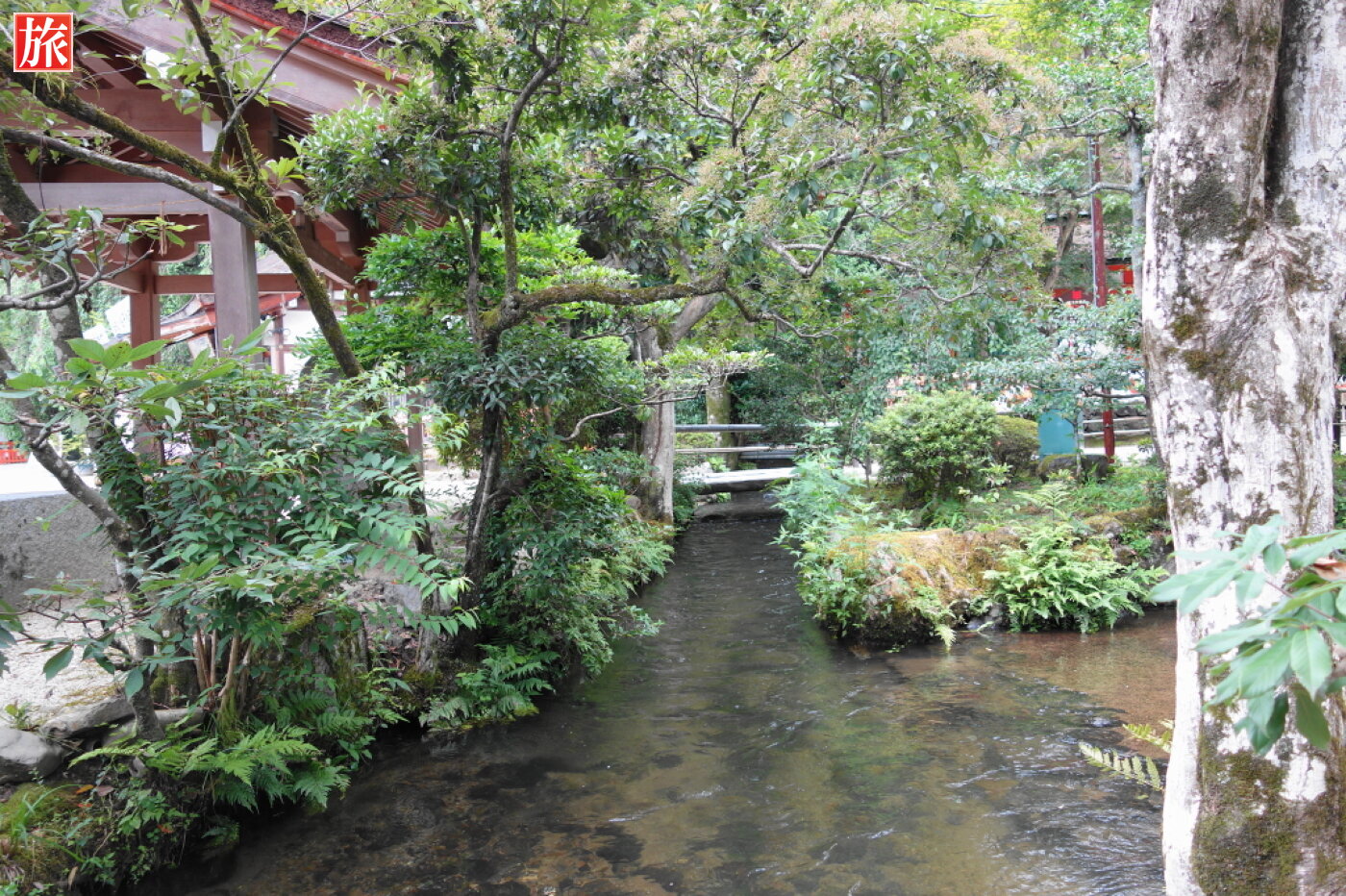 源流は賀茂川で上賀茂神社の境内に近づくと御生所川・御手洗川と名を変える聖なる川。明神川と御物忌川は上賀茂神社の本殿そばで合流。合流点そばには橋殿(はしどの)があり、葵祭り前の吉日に十二単に身を包んだ斎王代がここで禊(みそぎ)払いをします。