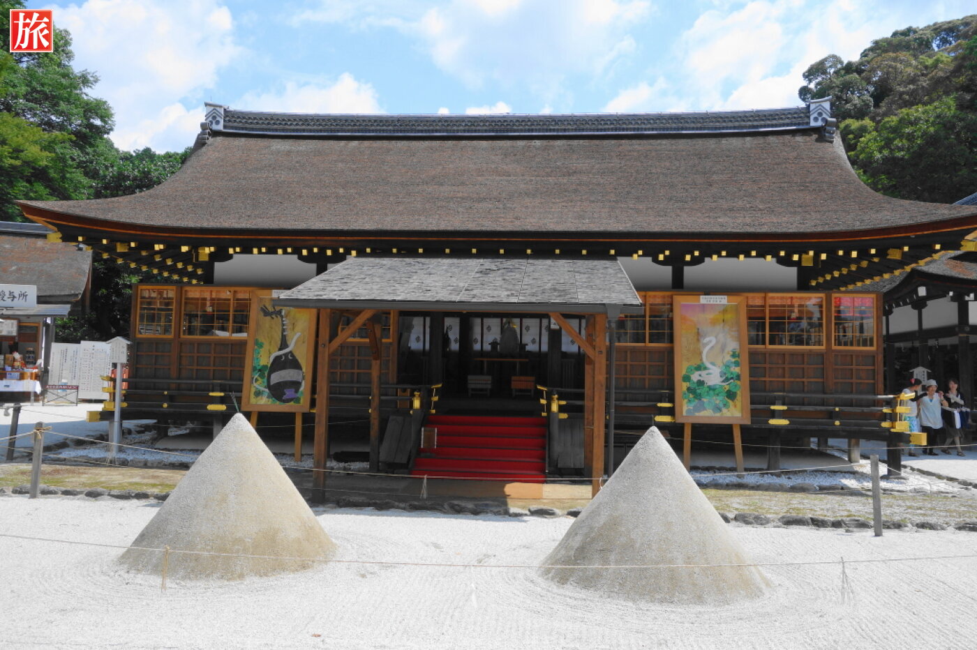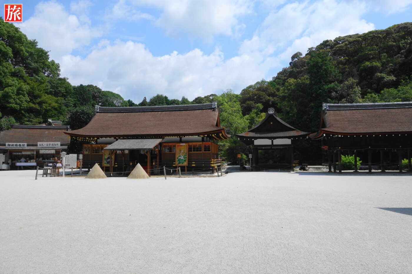 神代の昔、円錐形の神山に御祭神が最初に降臨したと伝わることから、上賀茂神社細殿前には白砂が二つの円錐形に盛られ「立て砂」や「盛砂」と呼ばれている。
