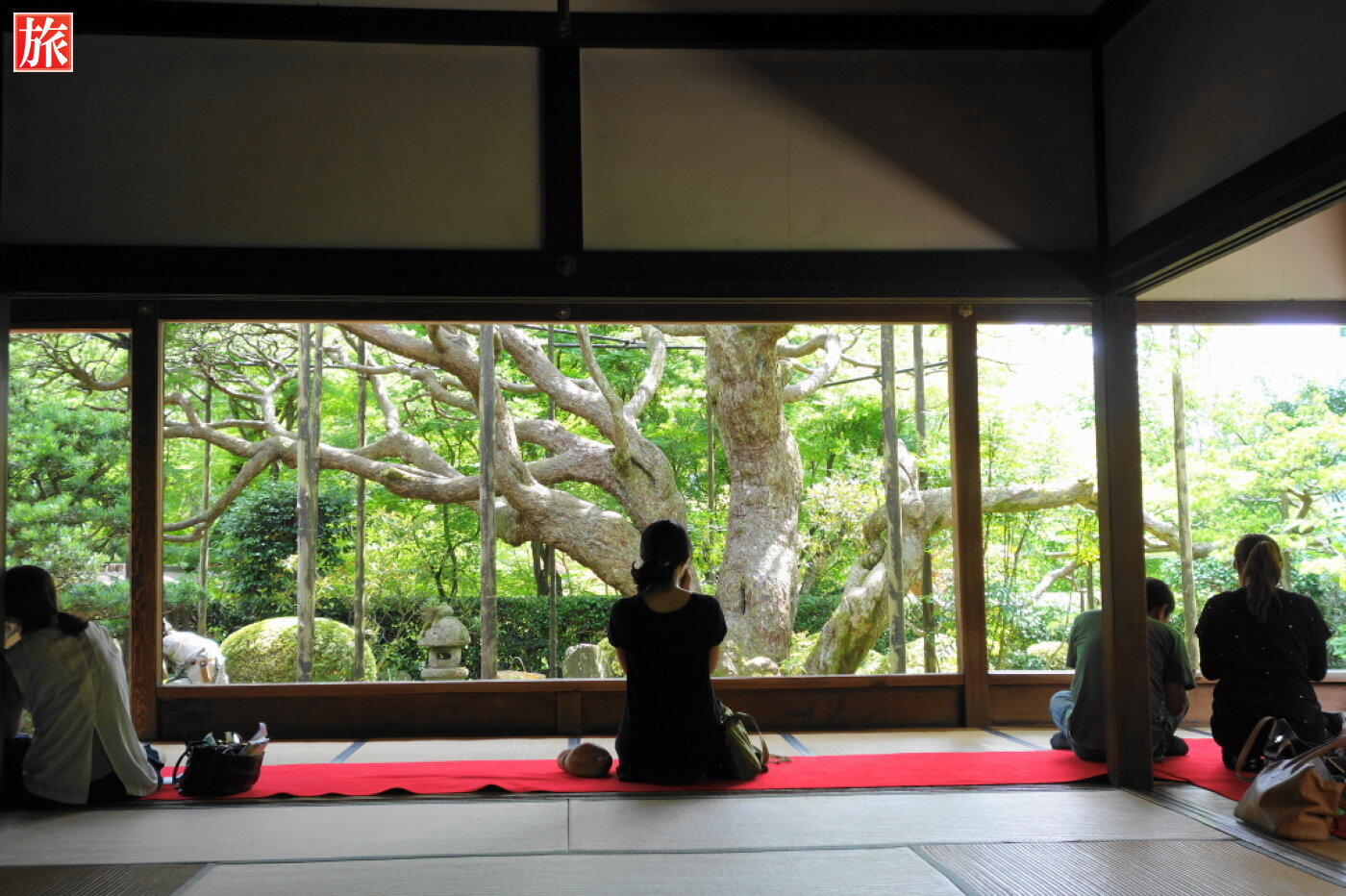 見どころは近江富士をかたどった天然記念物の「五葉の松」と客殿から見える柱と柱との間の風景「額縁庭園」、伏見城の戦いで鳥居元忠や家臣らが自刃した建物の血痕の残る床板を供養ために京都などの寺の天井に貼られた「血天井」などです。