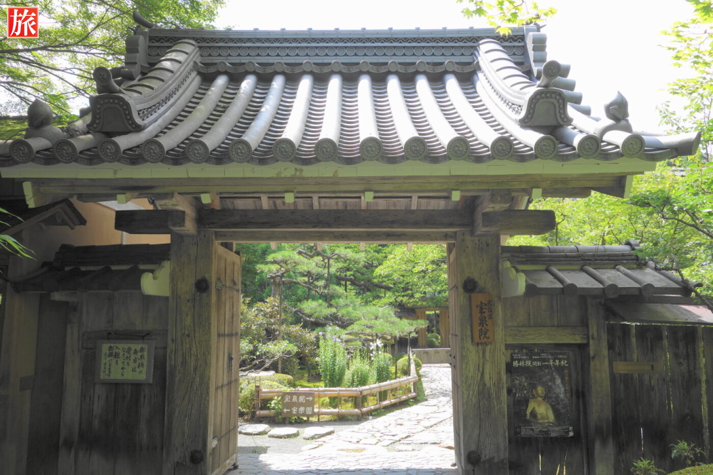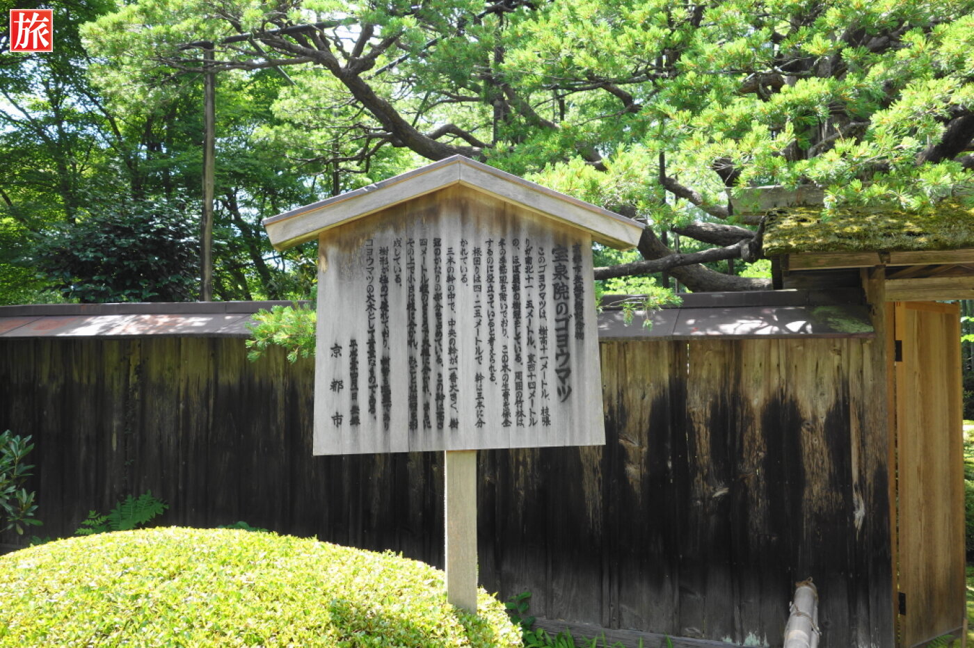 宝泉院 表門。五葉の松。近江富士をかたどった天然記念物の五葉の松。