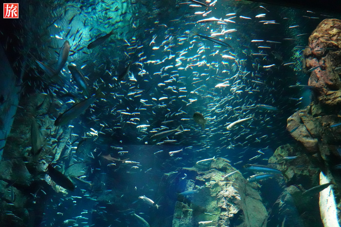 太平洋(最大長34m、深さ9m、水量5,400m³)ジンベエザメ、イトマキエイ、マダラトビエイ、アカシュモクザメ、シノノメサカタザメ、グルクマ、ネムリブカ、マサバ、ギンガメアジ、フエダイ、タマカイ、クエなど