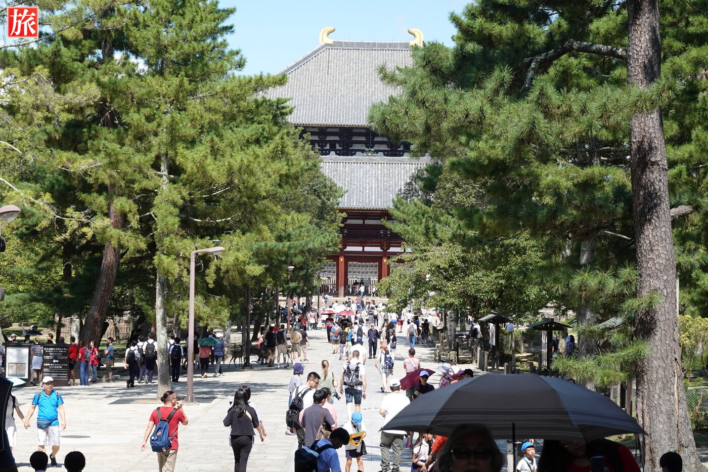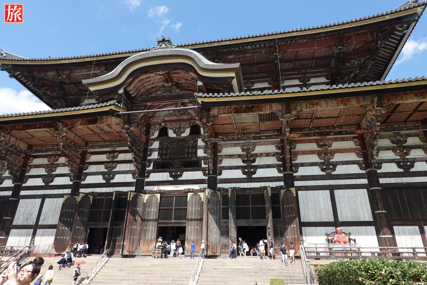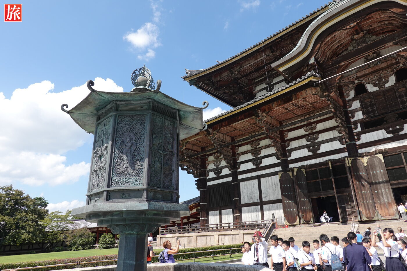 日本の文化に多大な影響を与えてきた寺院、東大寺。大仏殿は、平安時代末期と戦国時代に兵火でニ度焼失、現在の建物は1709年(宝永6年)に落慶したもので、奥行きと高さは創建当時とほぼ同じですが、横幅は創建時に比べ約3分の2に縮小しました。現存する木造建築では世界最大級の規模を誇ります。