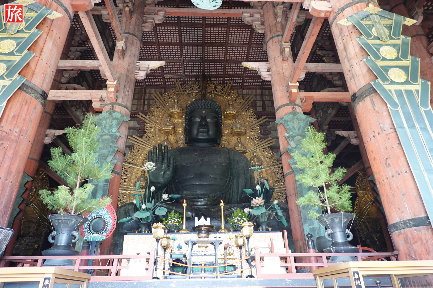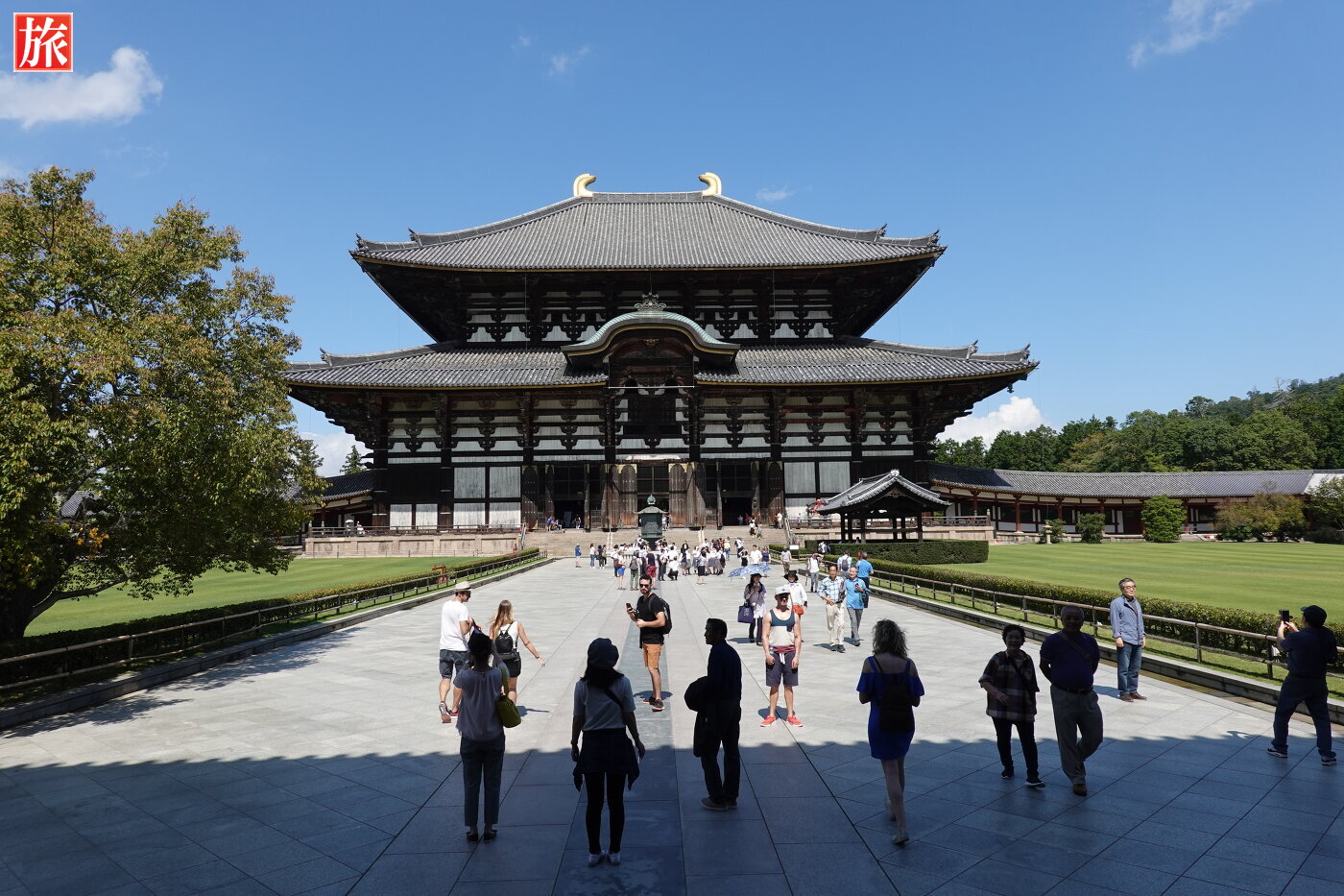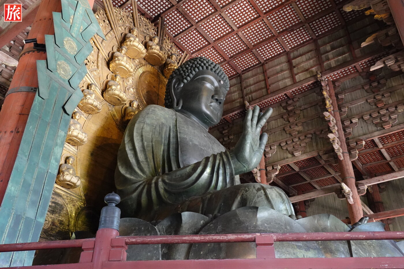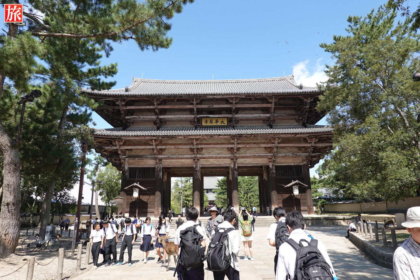 日本の文化に多大な影響を与えてきた寺院、東大寺。大仏殿は、平安時代末期と戦国時代に兵火でニ度焼失、現在の建物は1709年(宝永6年)に落慶したもので、奥行きと高さは創建当時とほぼ同じですが、横幅は創建時に比べ約3分の2に縮小しました。現存する木造建築では世界最大級の規模を誇ります。