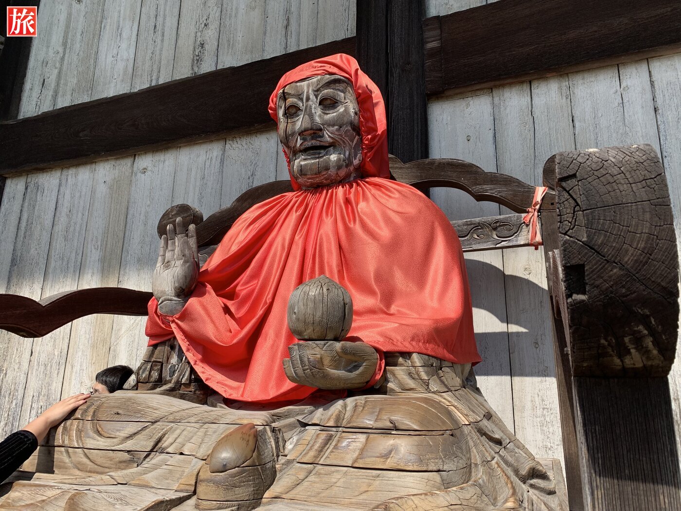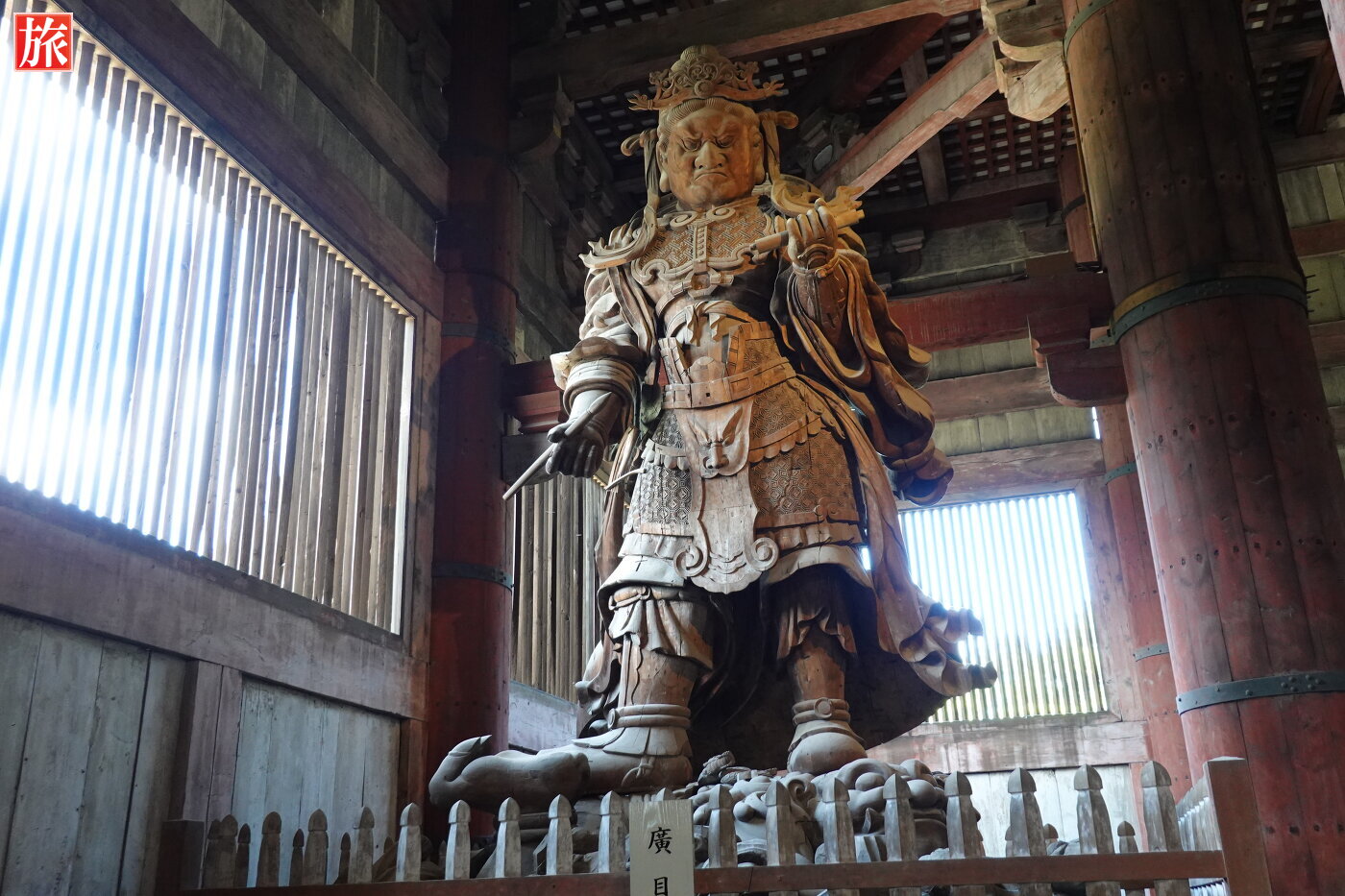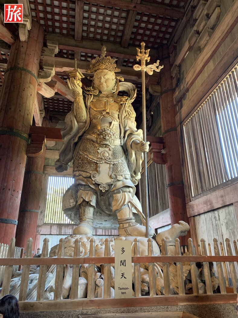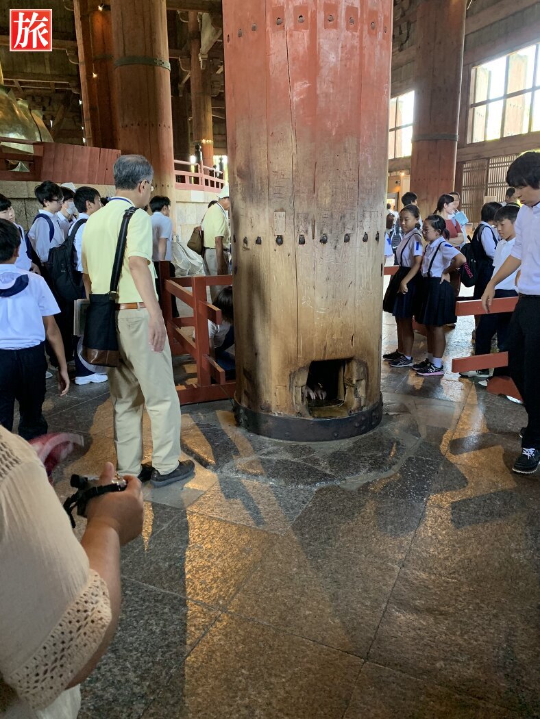 多聞天像(金堂東北隅)、殿内の柱に穴が、この穴をくぐると頭が良くなる、無病息災のご利益があるなどの言い伝えがあり、旅行客らによる長蛇の列ができています。如意輪観音菩薩像