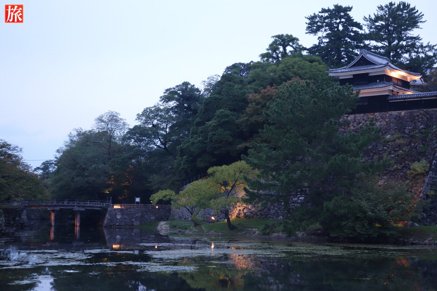別名・千鳥城とよばれ現存天守は国宝、城跡は国の史跡に指定されています。松江城は明治時代初頭に廃城令によって天守以外の建物が全て払い下げられ、城跡は所有者の松平家が天守を含む城地を松江市に寄付し、松江城山公園として開放されています。松江城周辺をライトアップする光のイベント「2018年9月1日~10月31日」は日没後から21時ごろまで天守閣がライトアップされ、公園の外からライトアップを観賞できます。