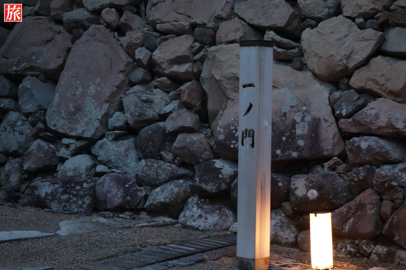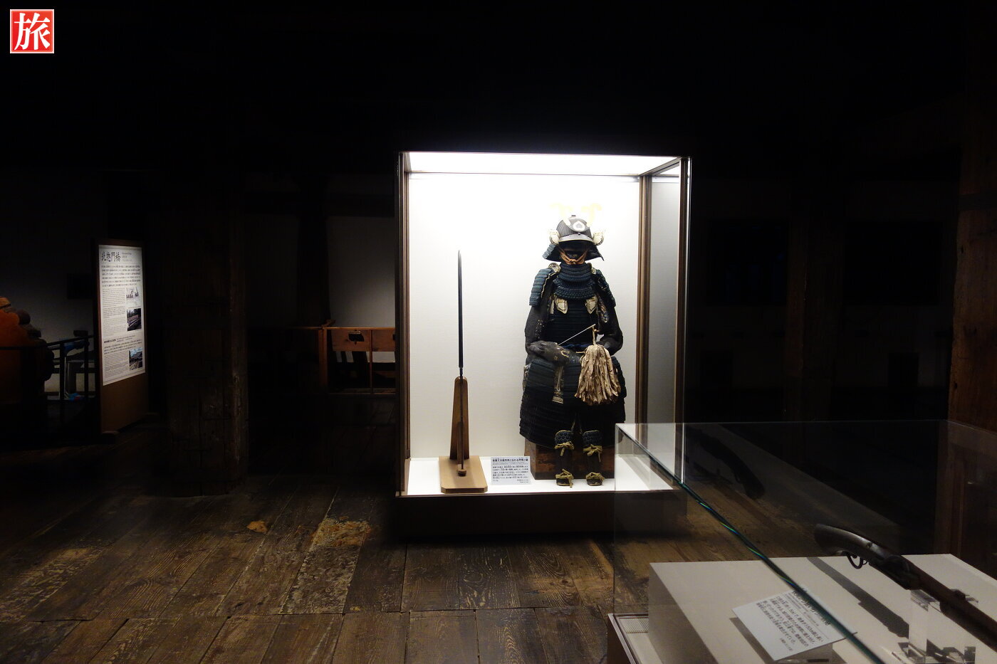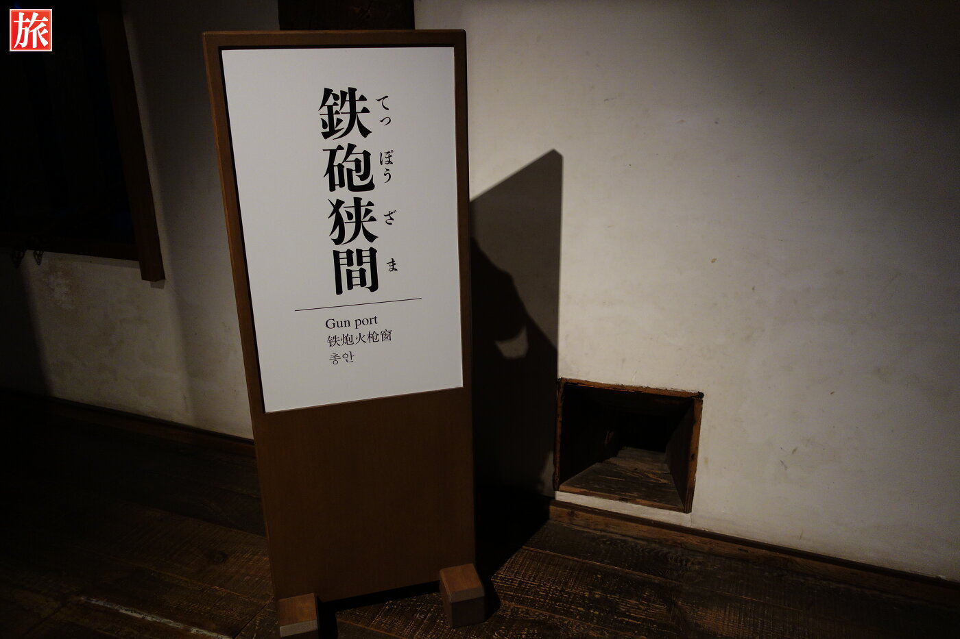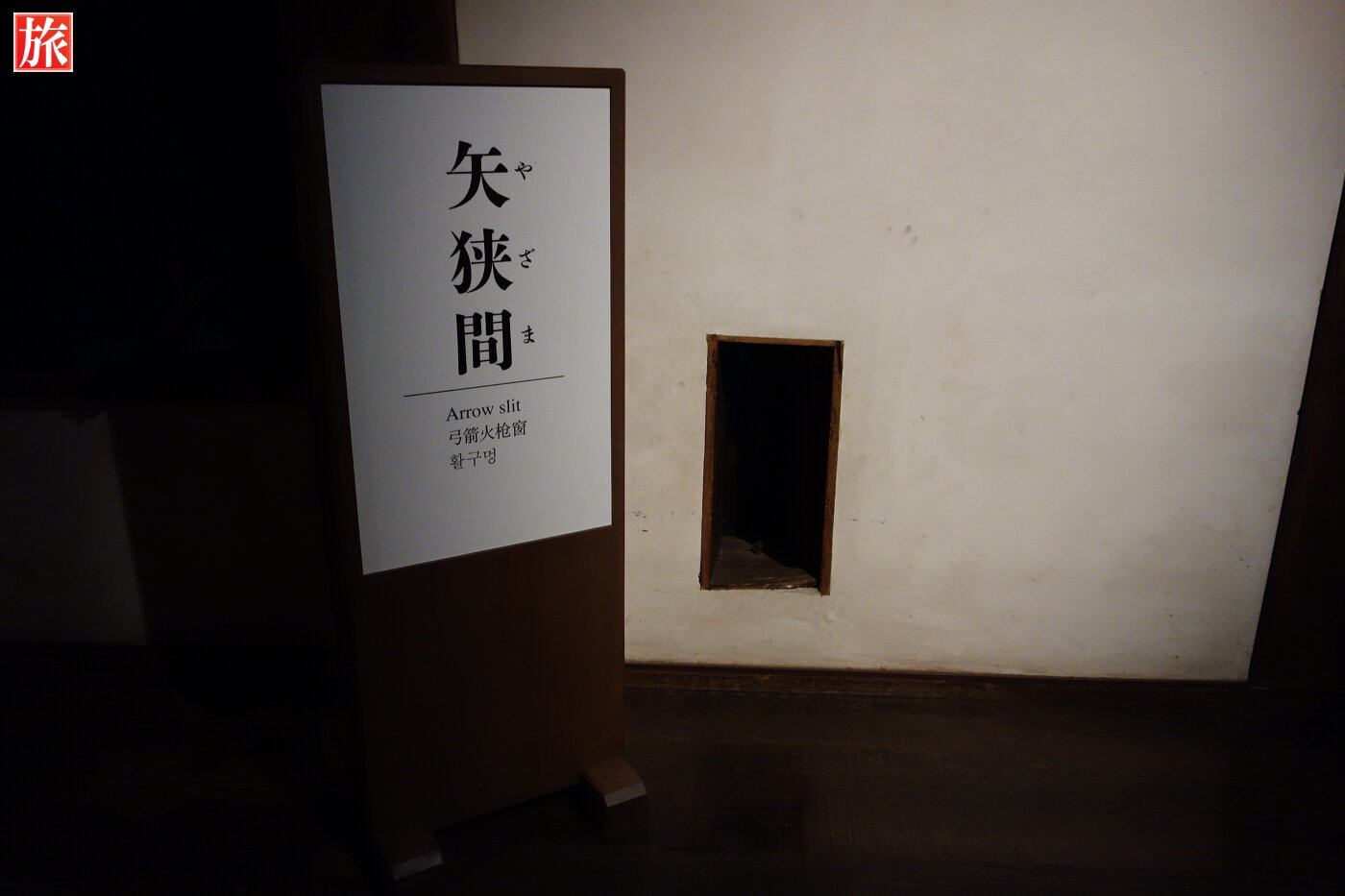 矢狭間、鉄砲狭間、最上階へ続く階段、鎧、天守からの夜景。夜間は訪れる人も少なく、鎧が出てきて怖かった