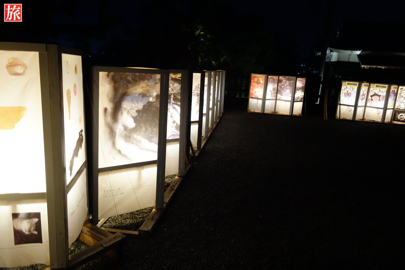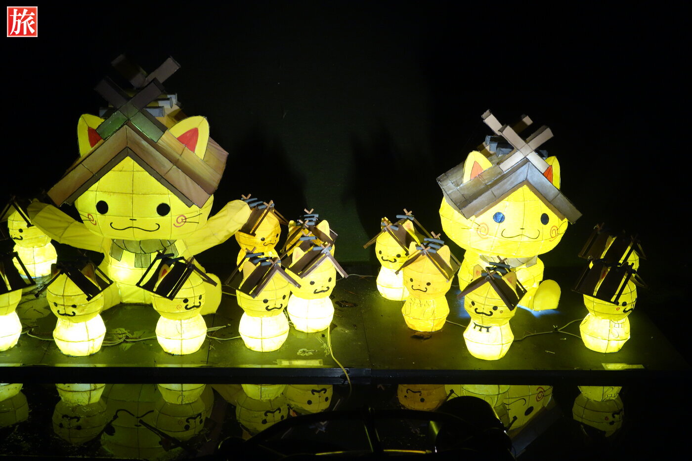 国宝の松江城(松江市)周辺を約2千個のあんどんで照らす。松江城大手前駐車場水燈路案内所裏 (堀川上)には、しまねっこねぶた