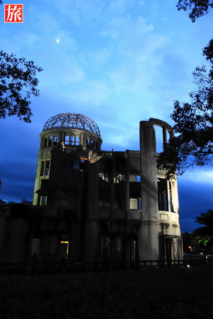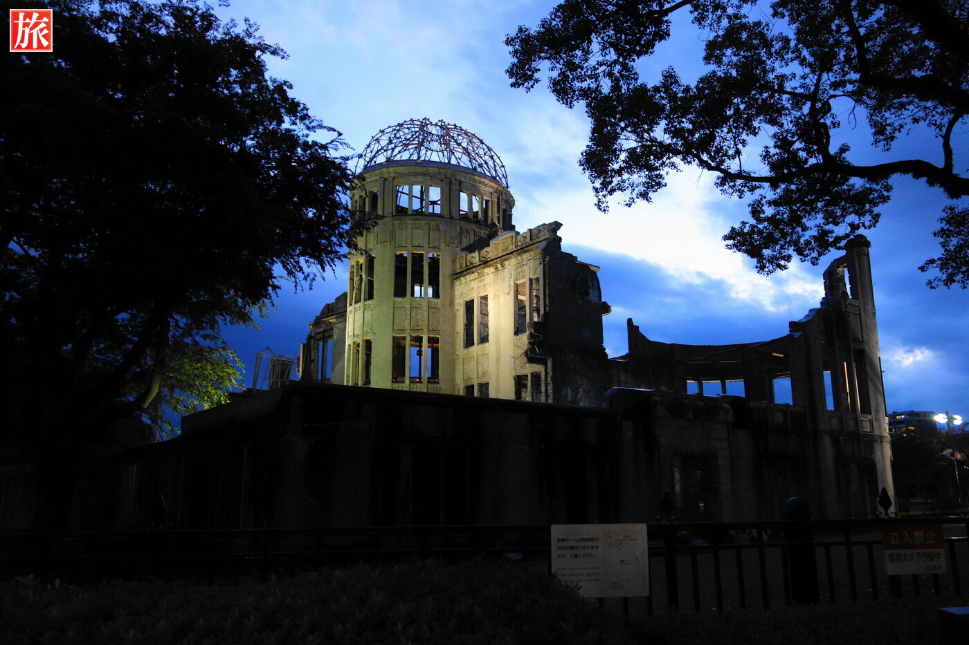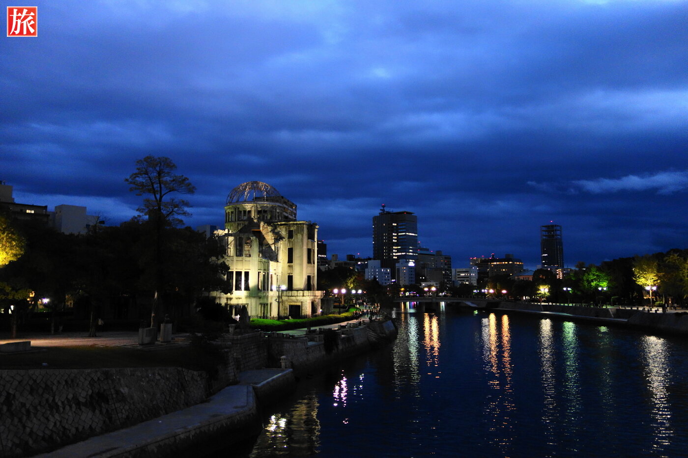 当時の惨状を伝える姿で、太田川の支流、元安川沿いに建ち、戦争の悲惨さを伝えている。世界遺産に登録されている。ライトアップは日没から日の出まで。