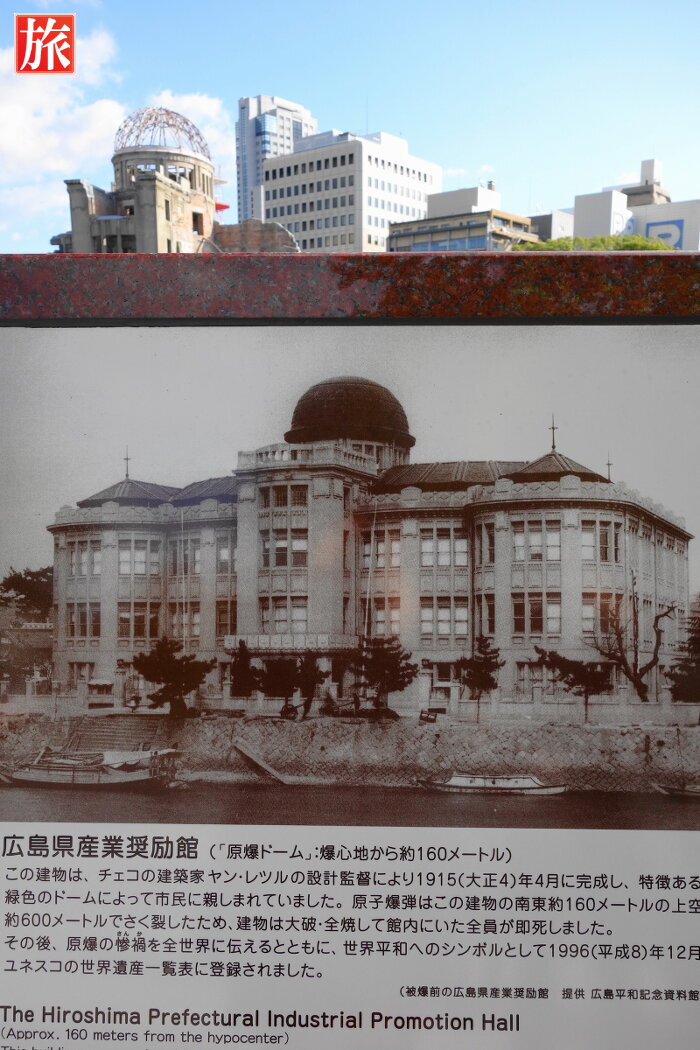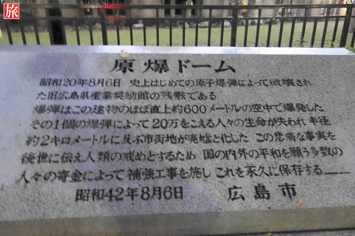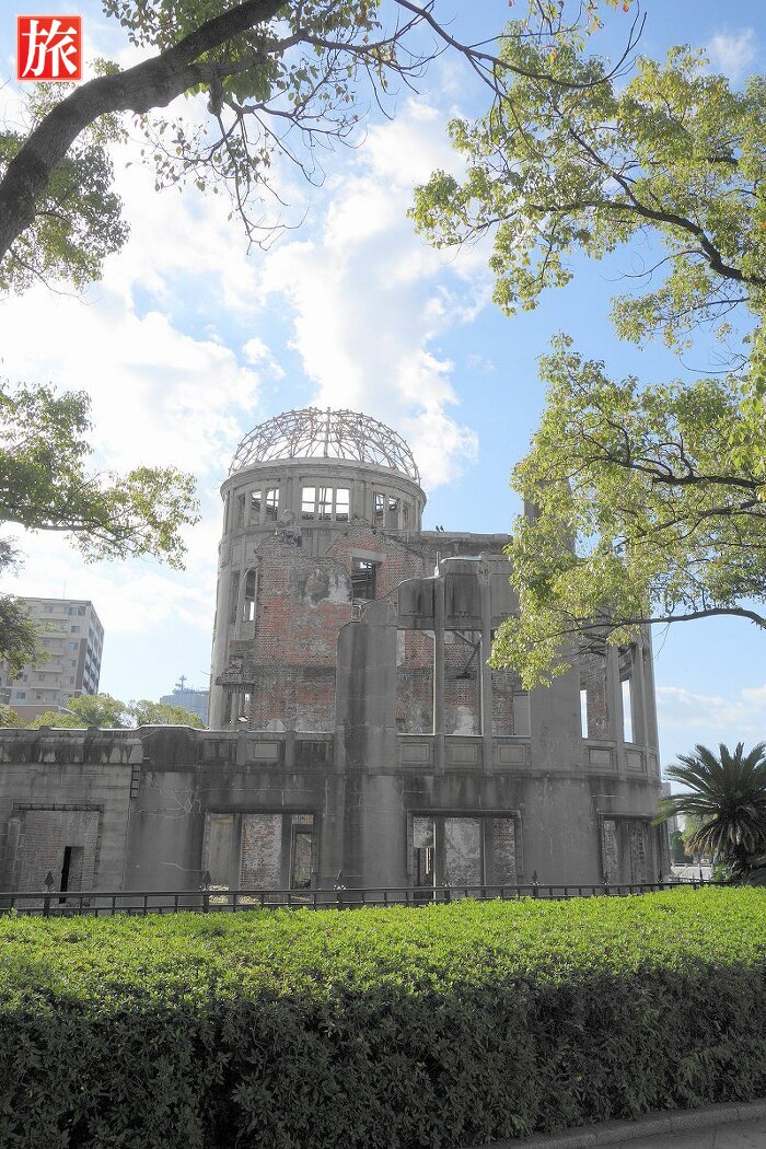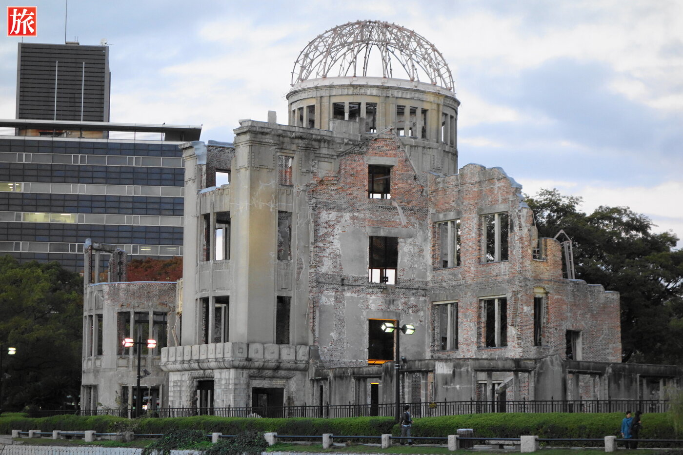 当時の惨状を伝える姿で、太田川の支流、元安川沿いに建ち、戦争の悲惨さを伝えている。世界遺産に登録されている。ライトアップは日没から日の出まで。