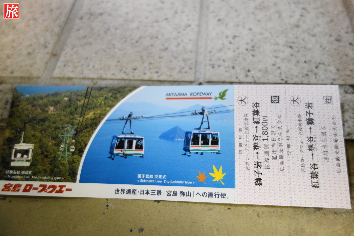 紅葉谷公園を登り、宮島ロープウエーの紅葉谷駅に着きました。乗り場入口です。乗車券です。紅葉谷公園から榧谷乗り換え、獅子岩まで往復1800円でした。