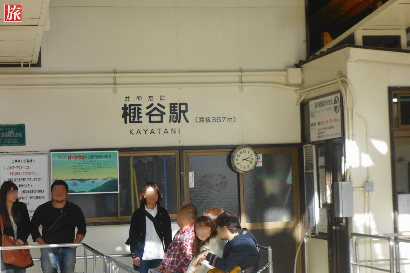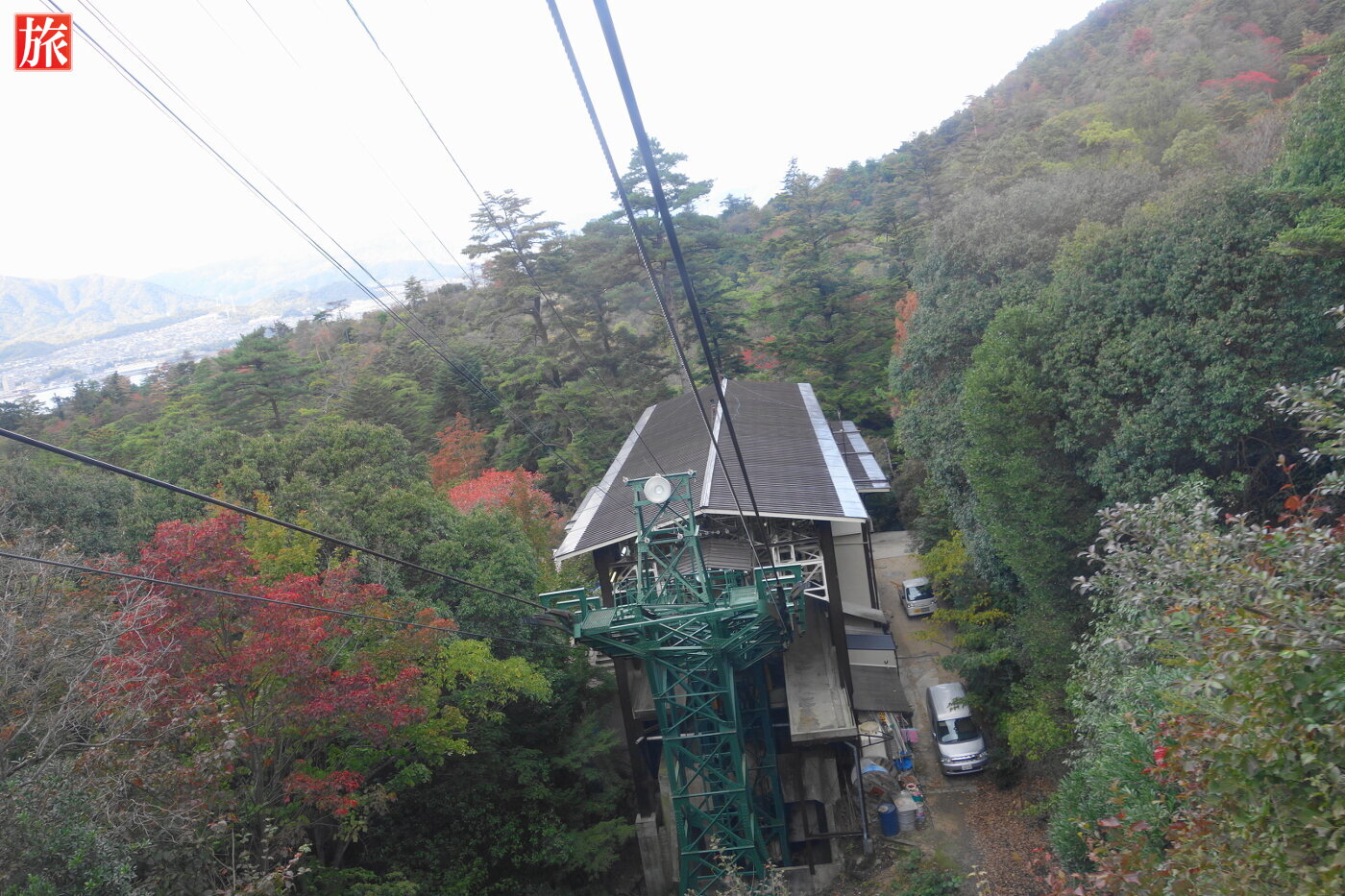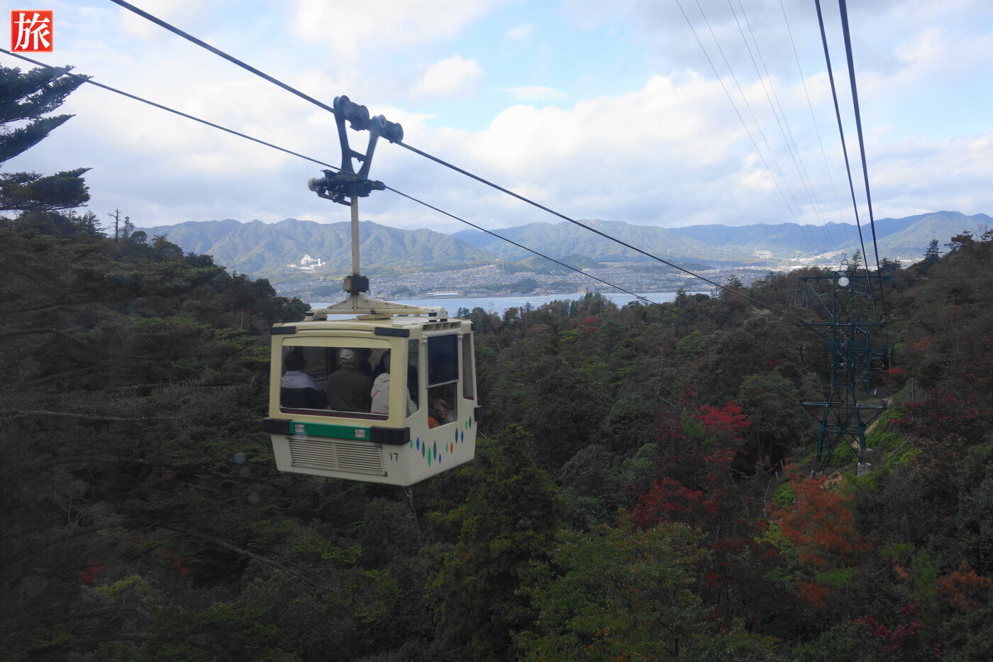 紅葉谷公園から弥山山頂直下の獅子岩までを結ぶロープウエー。途中に榧谷(かやたに)駅があるが、この駅での乗下車はできない。世界遺産に登録されている弥山の原始林を眺めながら上る。