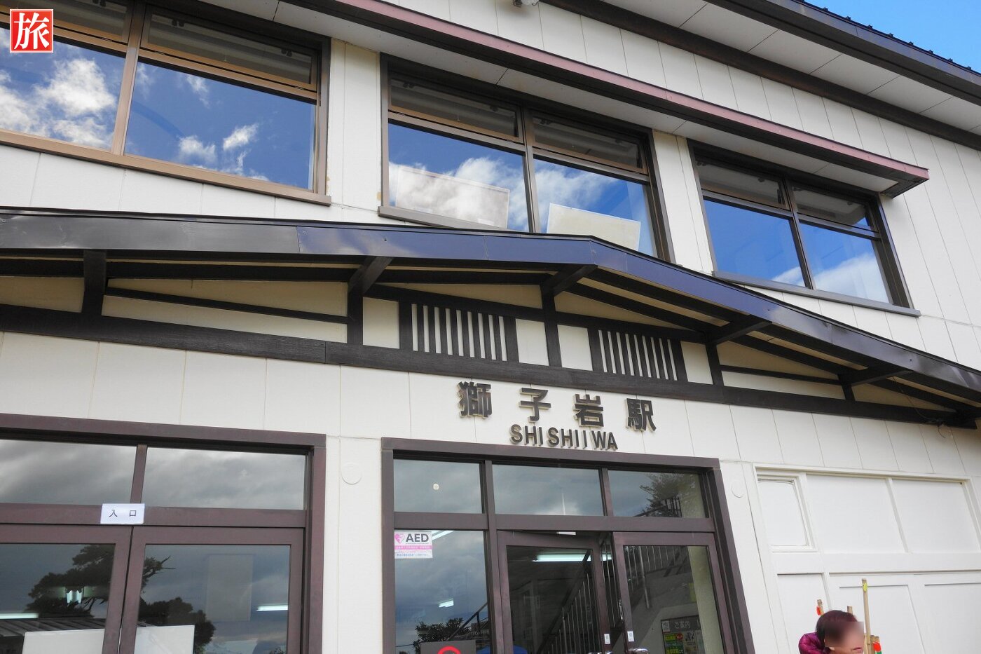 榧谷駅の様子です。榧谷駅から獅子岩に向かう車窓風景です。