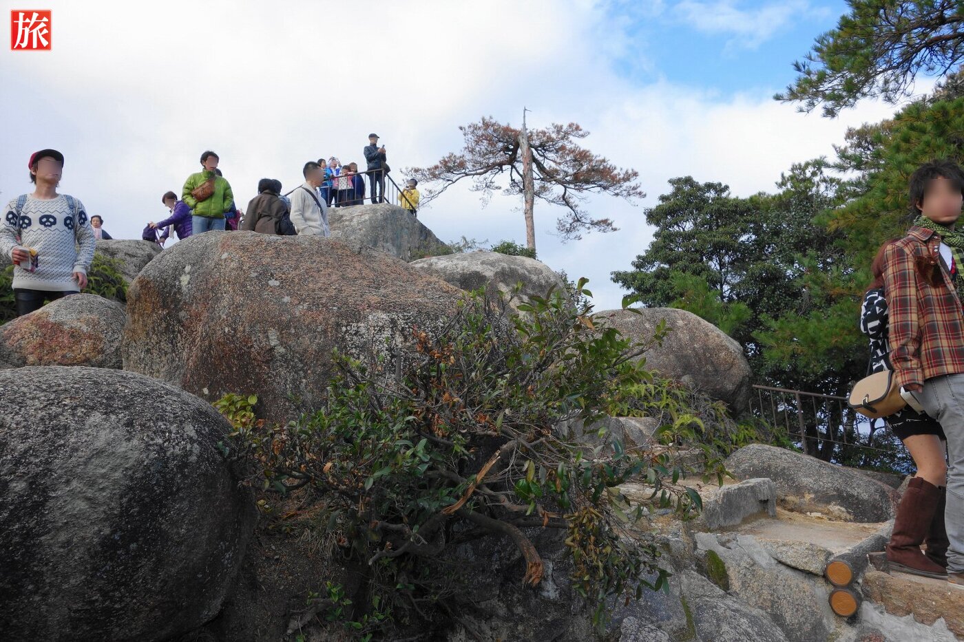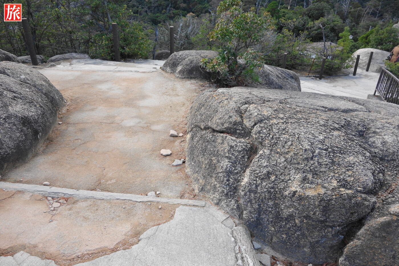 山頂付近をズームアップ。今日は時間が無く山頂までは行きませんでした。ロープウエー終点、獅子岩駅そばの獅子岩展望台からの風景。晶洞群(大きな岩に結晶が見られる)です。