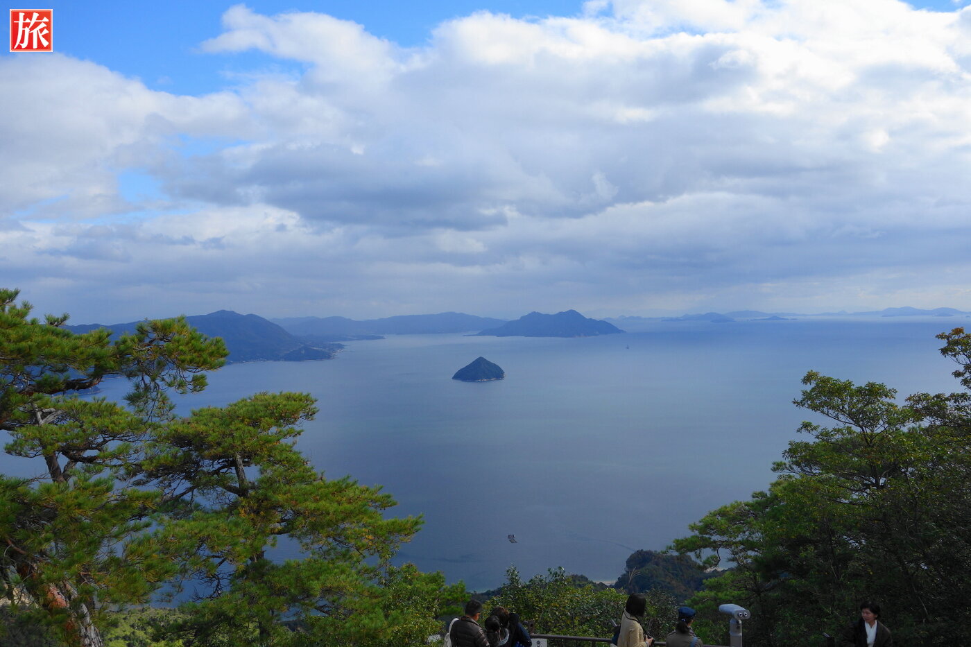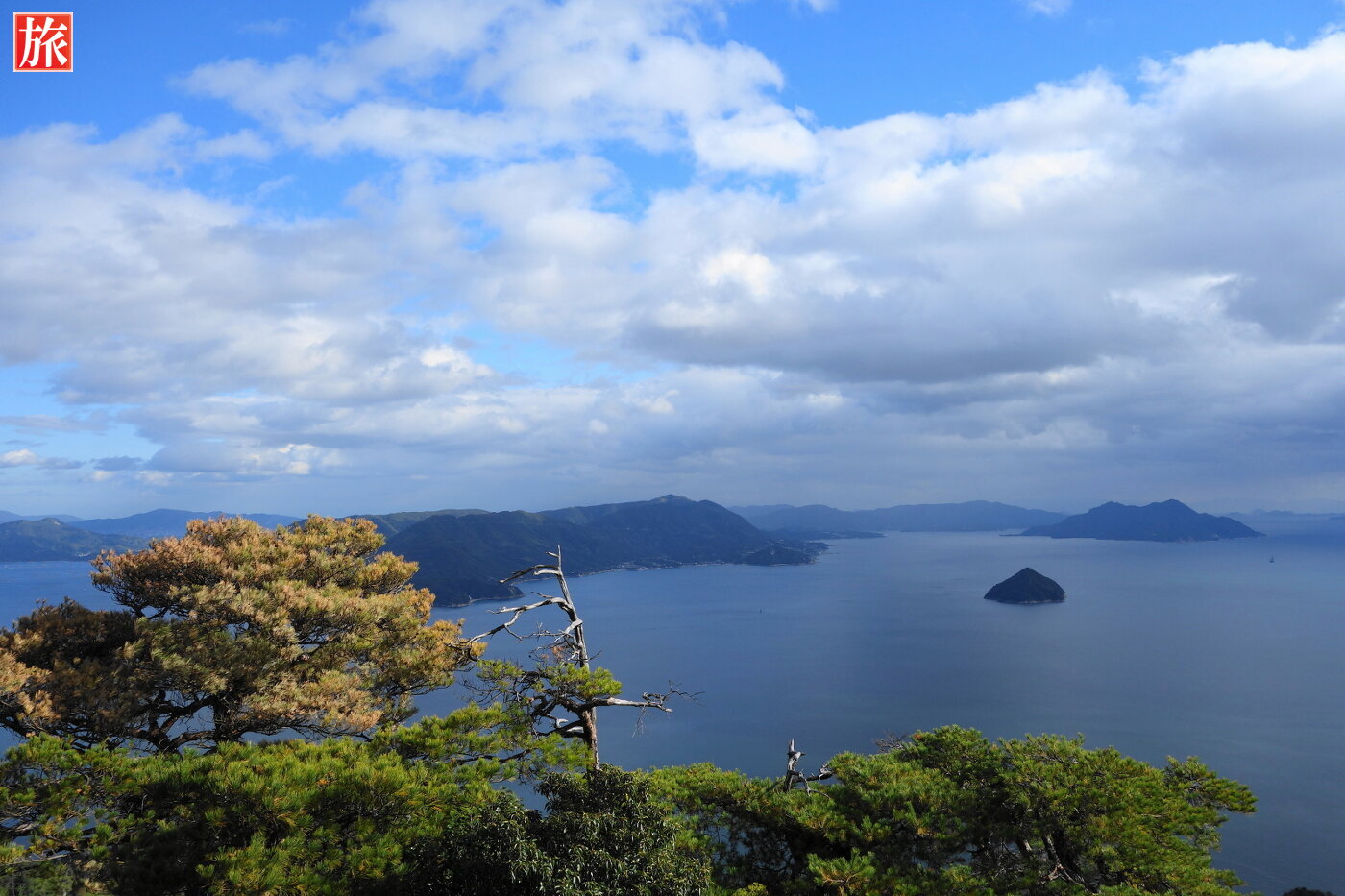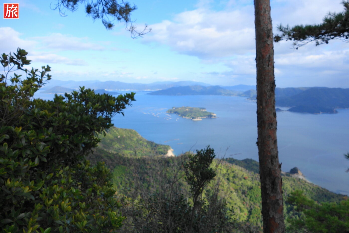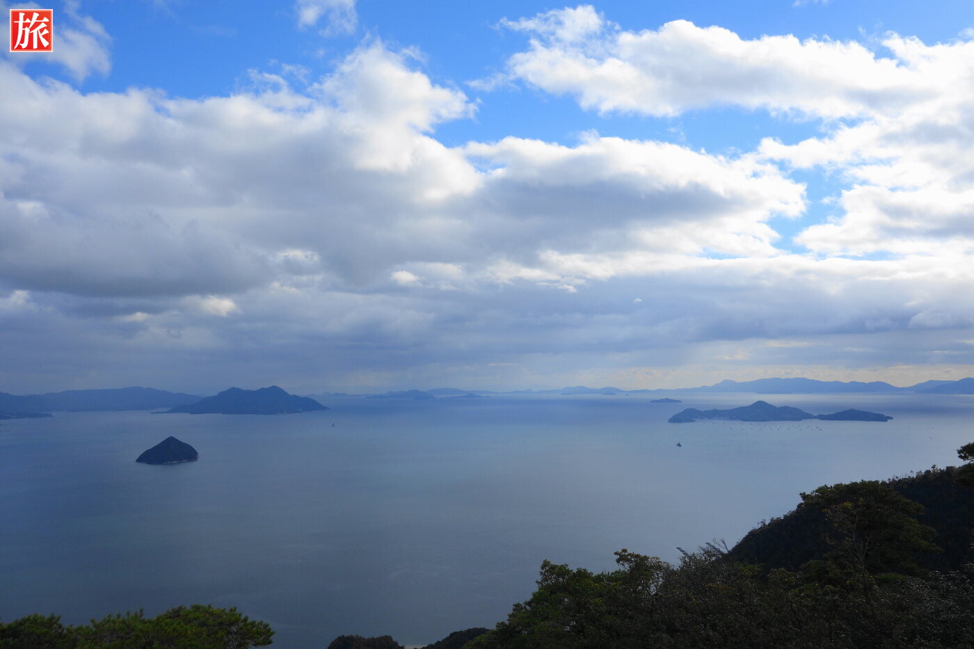 獅子岩展望台から瀬戸内海の島々を望む。手前が小黒神島、左手が西能美島、後ろに見えるのが大黒神島です。