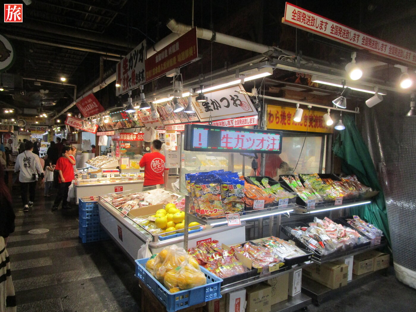 司食堂、職人がこだわり続けた技法で、目の前で豪快に焼き上げる「鰹たたき」は絶品。ひろめ市場内「お城下広場」 通路の様子