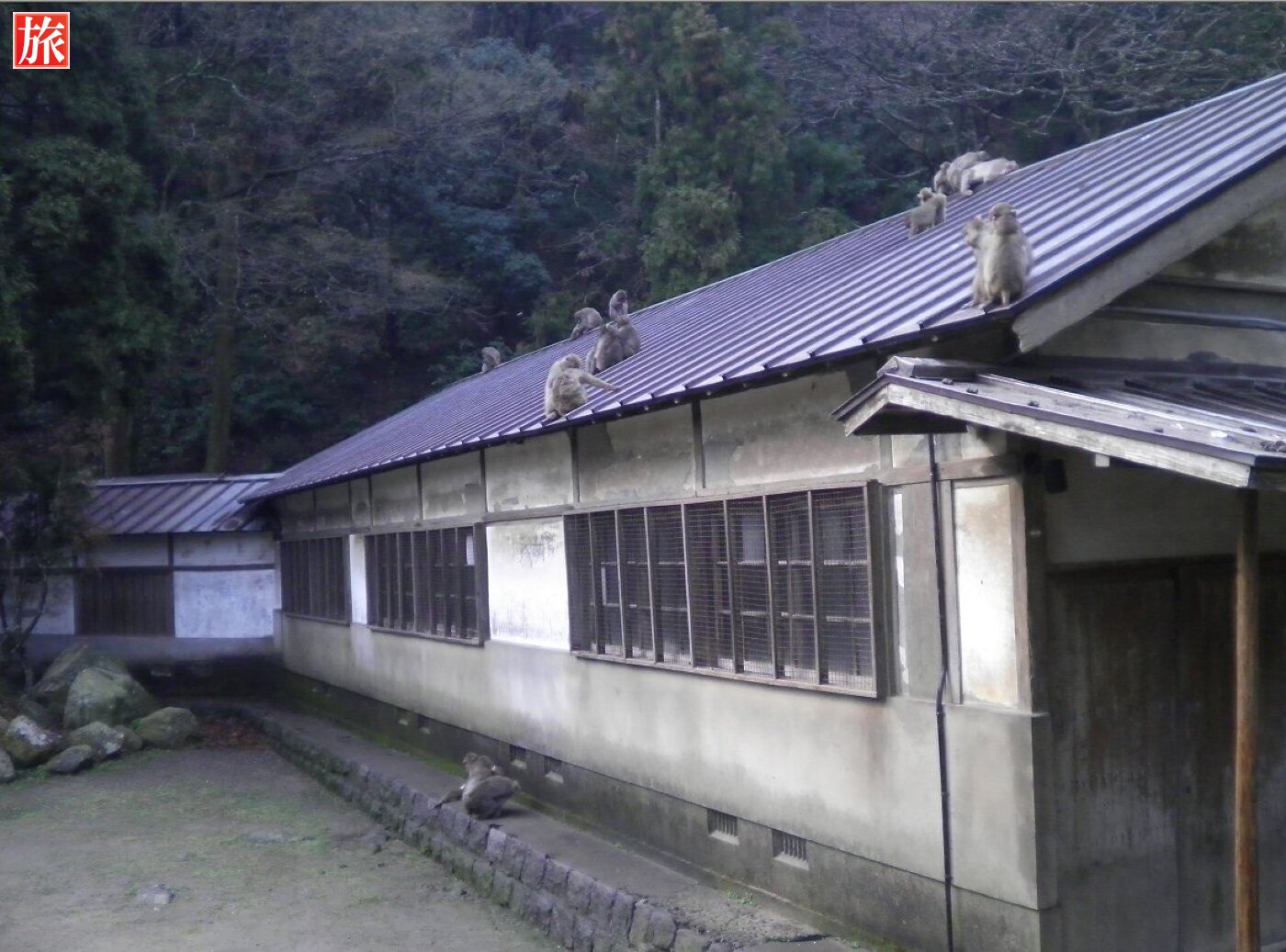 日本最大のニホンザルの生息地。約1300頭のサルが生息している。B群・C群という群れが毎日交替で餌を食べに山から下りてくるさまを間近で観察できる。