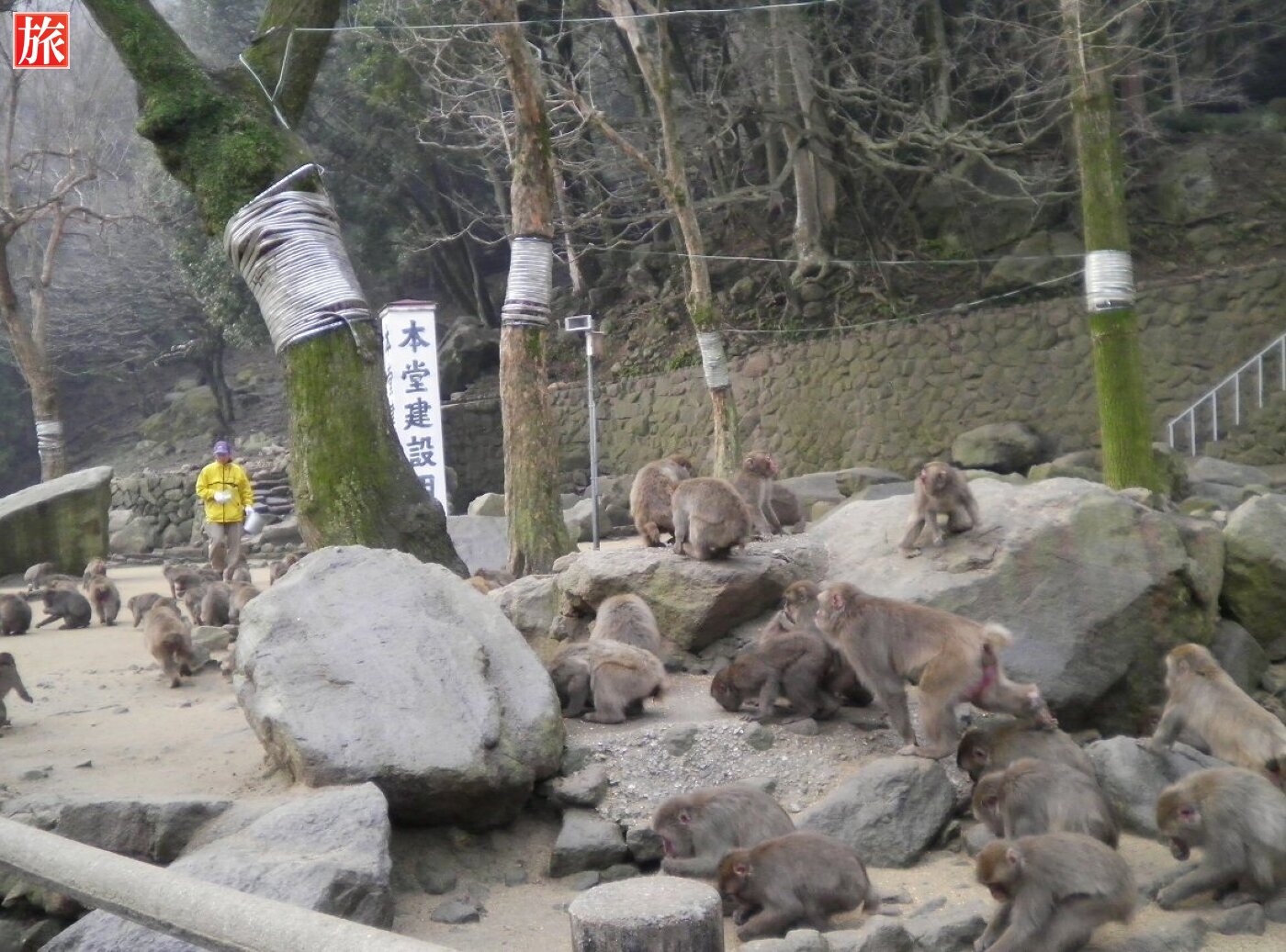広場ではマイクを持った係員の人がなにやらしゃべっており、イベント?として30分に一度餌やりをするのですがその際、数百匹の猿が一斉に集まってきます。これが圧巻です、こんな光景はここでしか見る事は出来ないでしょう。