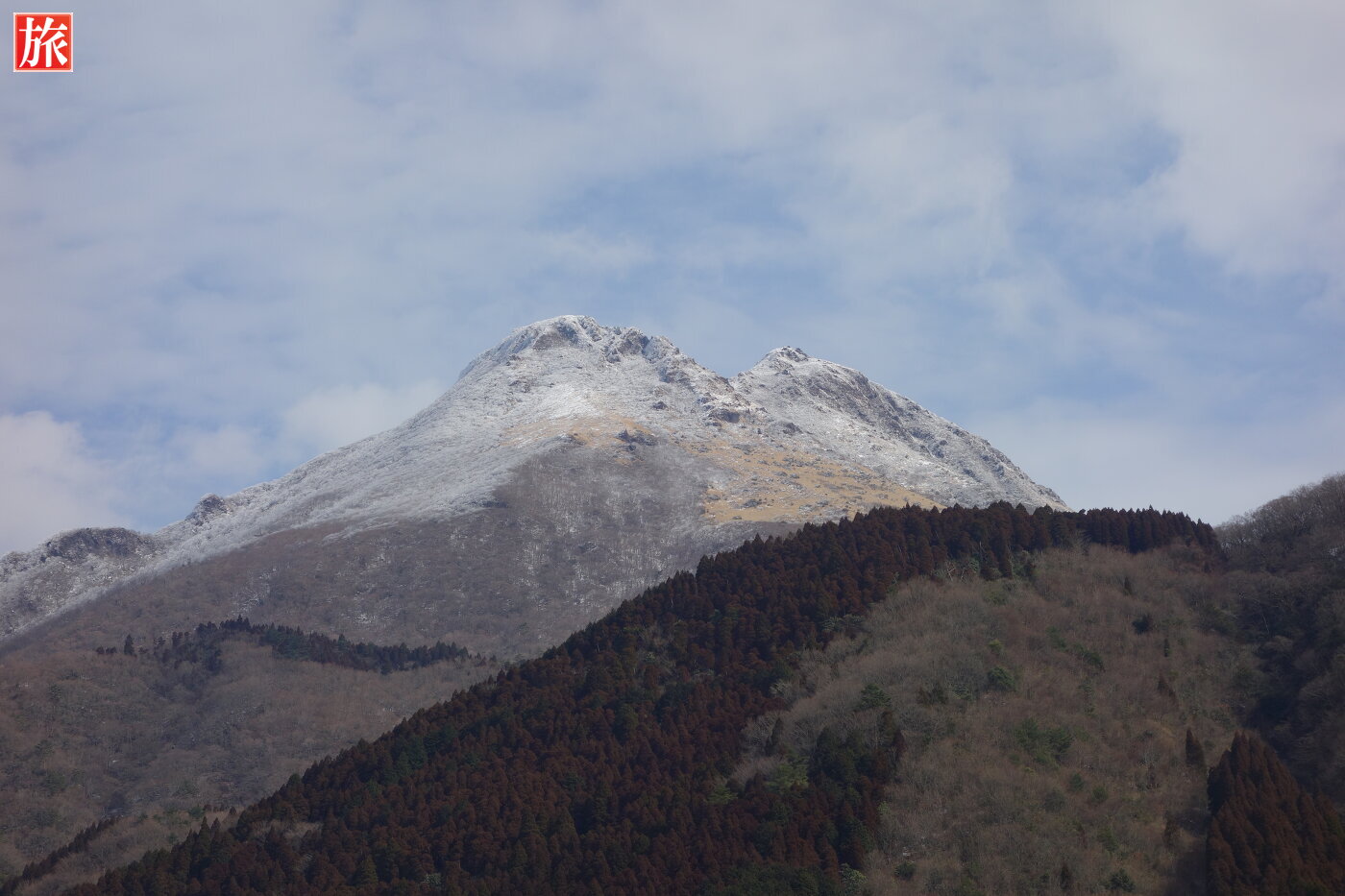 この左の電車(2両)で大分駅から田舎風景を眺めながら来ました。駅からは標高1,584mの 由布岳 が綺麗に望めます。