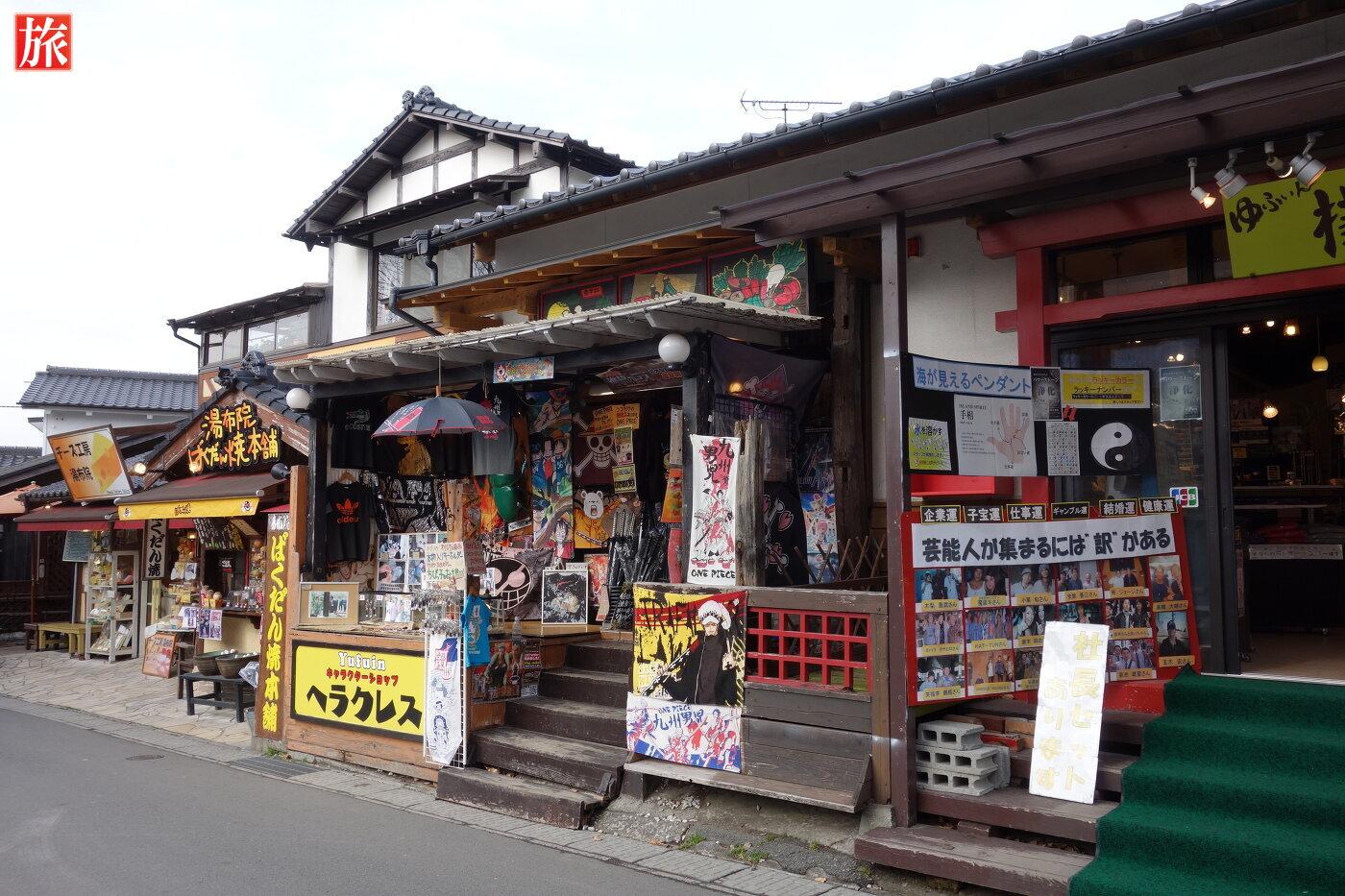 観光地らしい街並みが続きます。ジブリ好きの人は楽しいかもです。