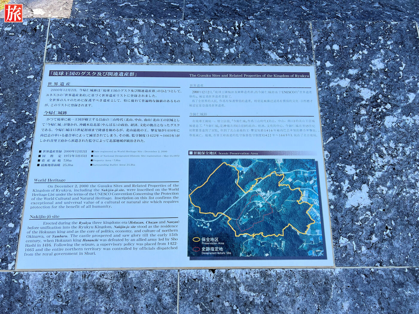 今帰仁城跡の入口付近、説明版。