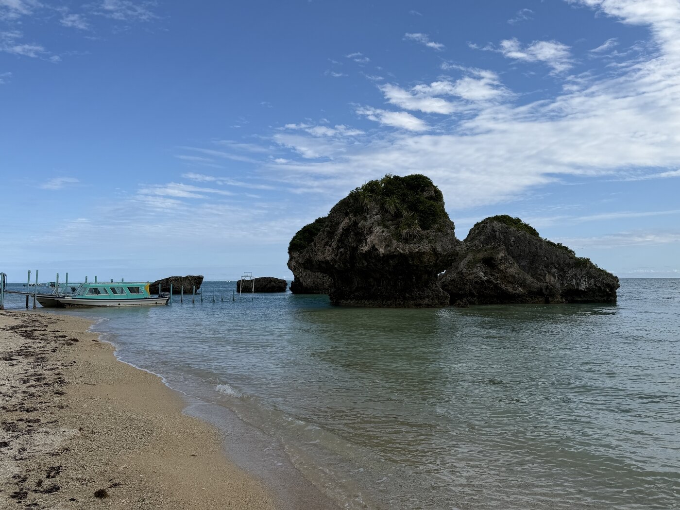 白い砂浜が2kmにわたって続く遠浅の天然ビーチ。グラスボートが運航していて、干潮時には貝殻拾いや海辺の散歩が楽しめる。近くにカフェやペンションもある。