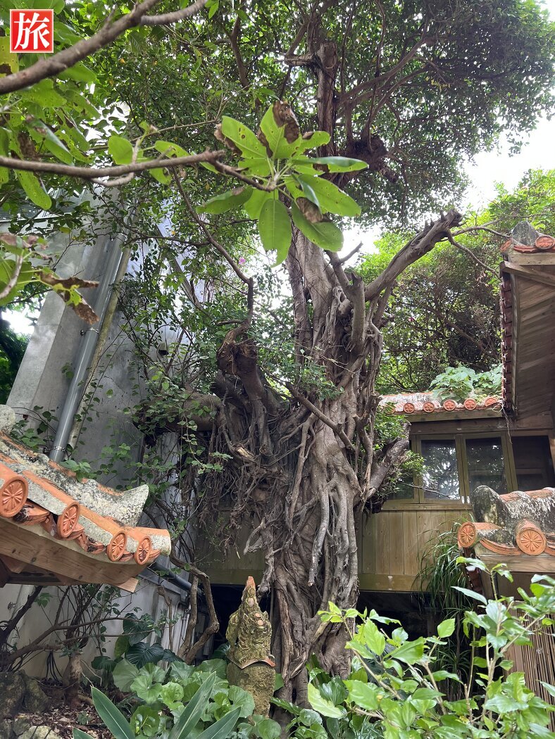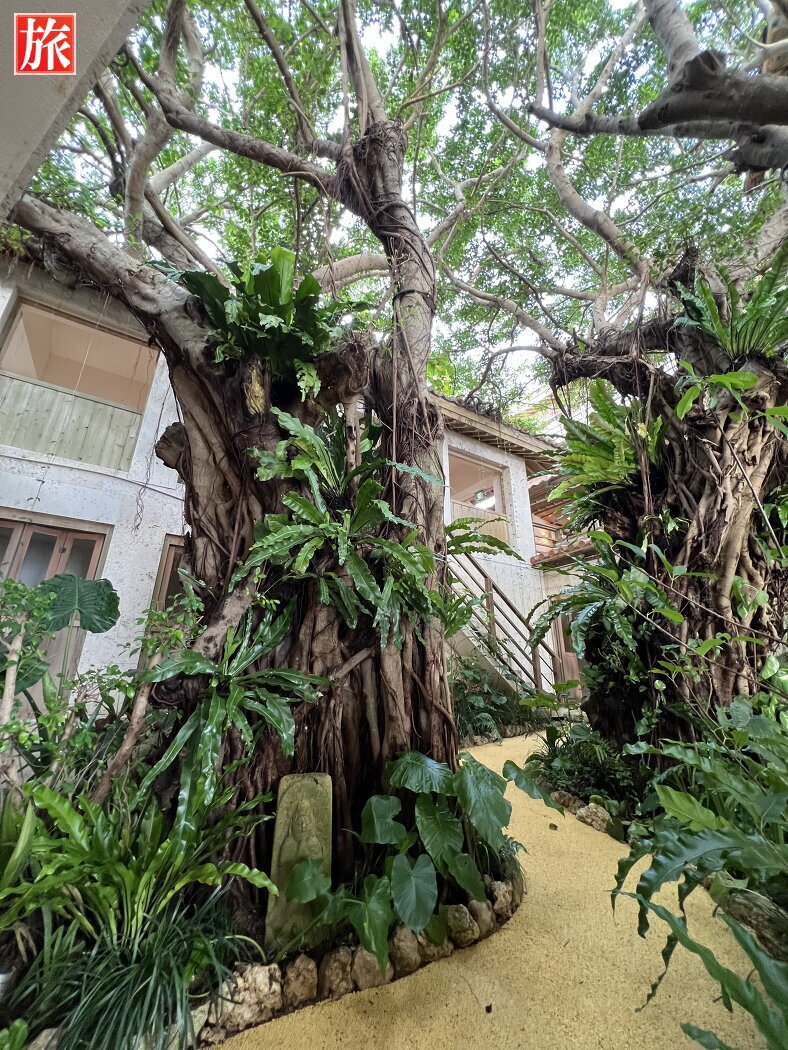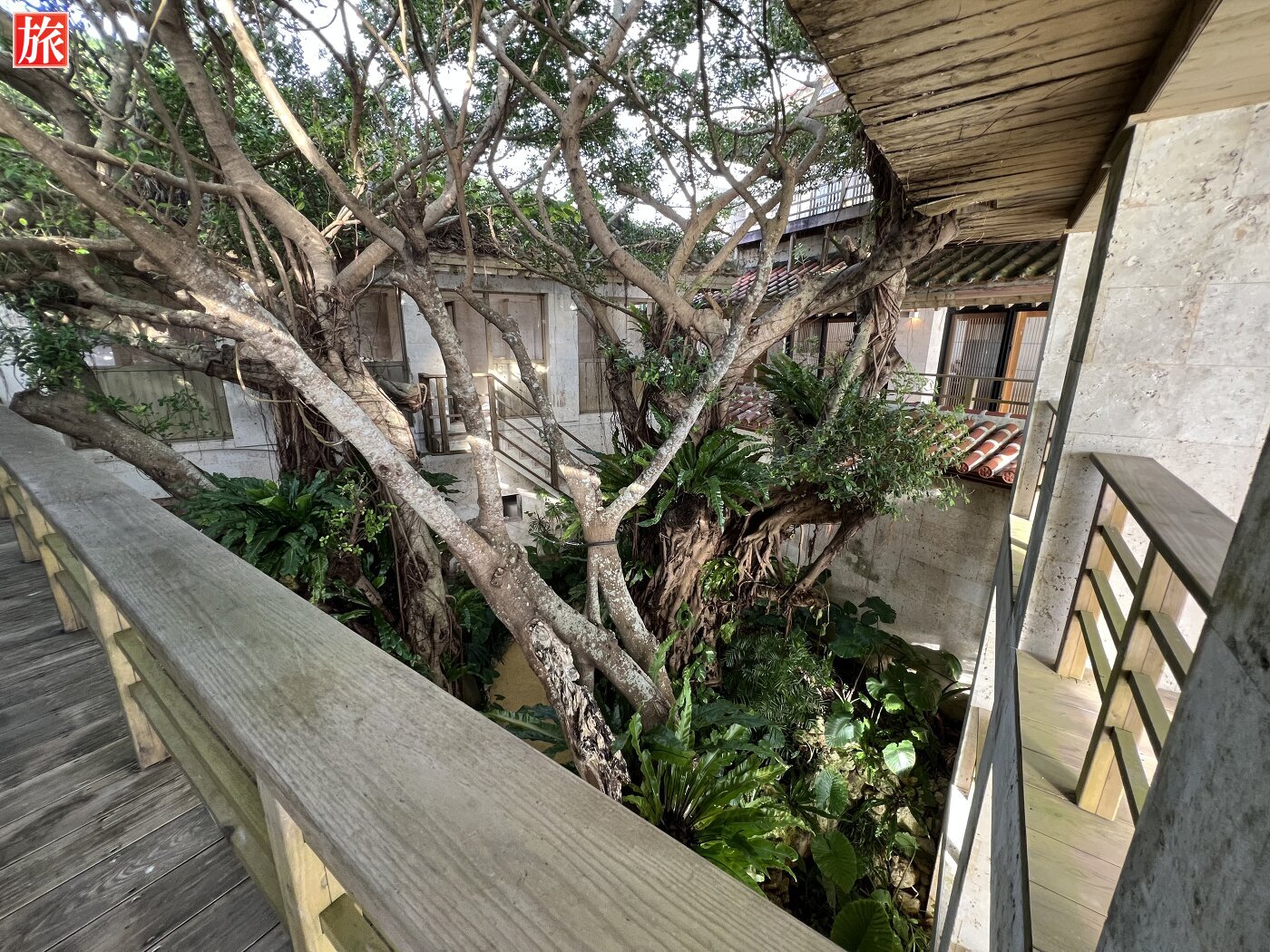 中庭「小さな森」の様子。巨大なガジュマル。禅の間(2F)。中庭「小さな森」。