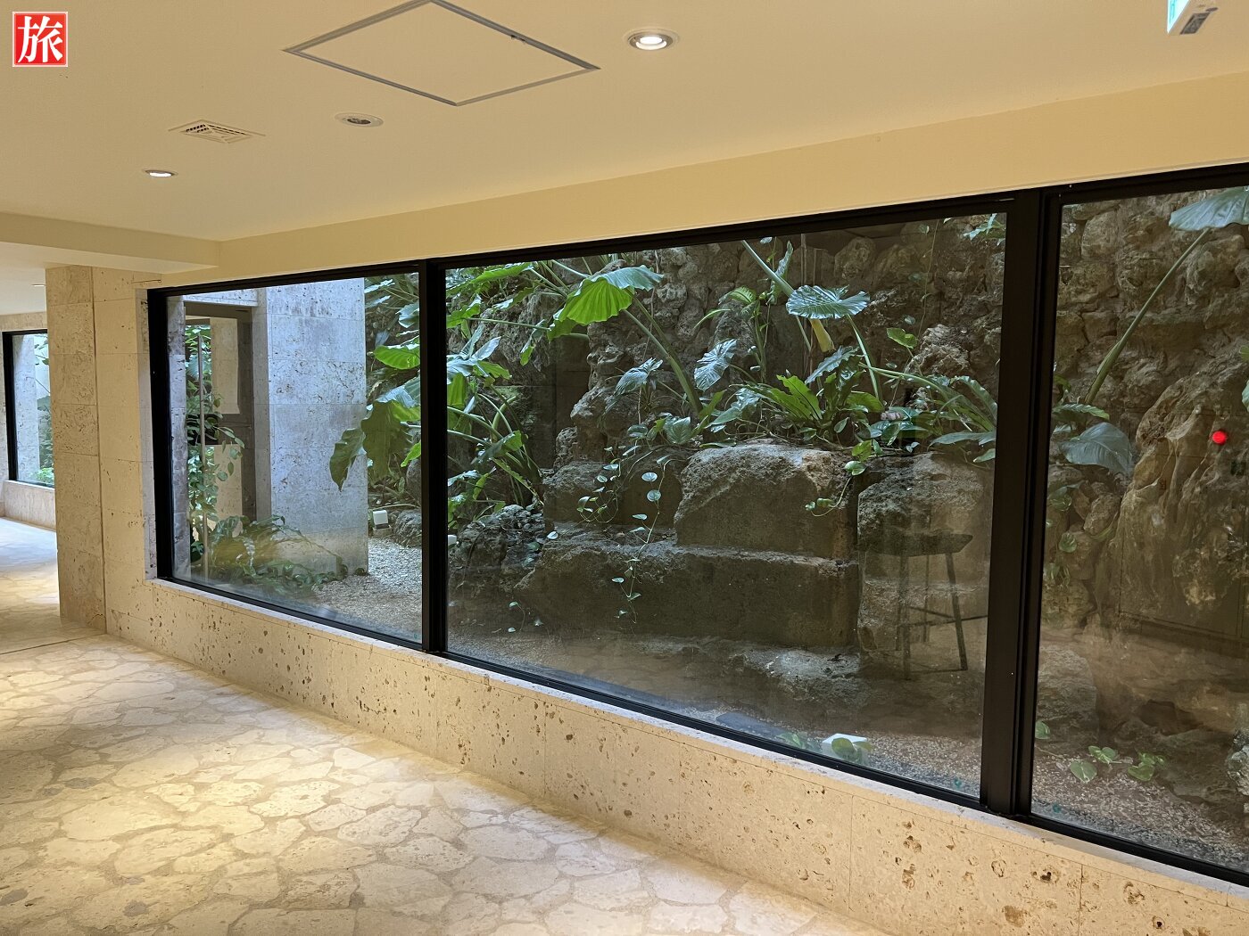 館内は、フロアを一周できる回廊を始め、巨大なガジュマルが生い茂る中庭や、高さ7メートルを超える石仏のある洞窟(ガマ)、ギャラリー、ライブラリーなど