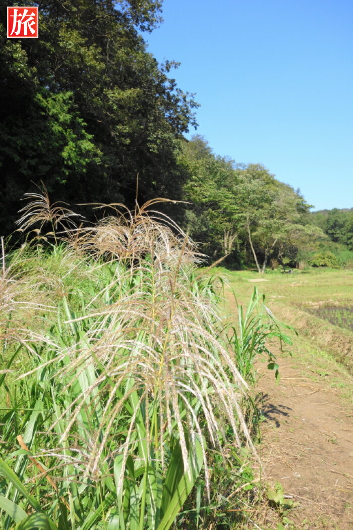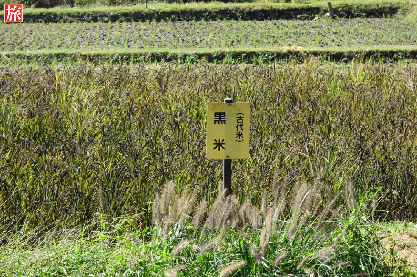 民家近くの岸田んぼ。10月11日に稲刈りは終わりましたが黒米(古代米)が少し残っていました。岸田んぼの側道(北東側)です。